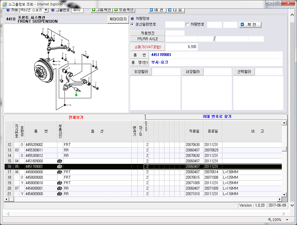 좌ㆍ우 전륜 로워암 부싱 갈라짐... 이 부분이 가장 의심 된다. 이건 앗세이로만 나온다고 하며 교환시 얼라인먼트를 다시 봐야 한다고...