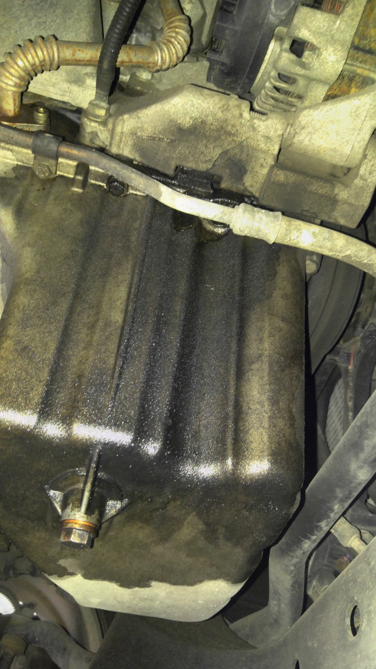 캬브레터 크리너를 이용하여 누유된 오일을 세척한 후 깨끗해졌다.
