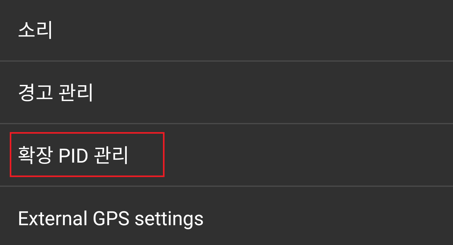 9. "확장 PID 관리" 메뉴를 찾아 터치한다.
