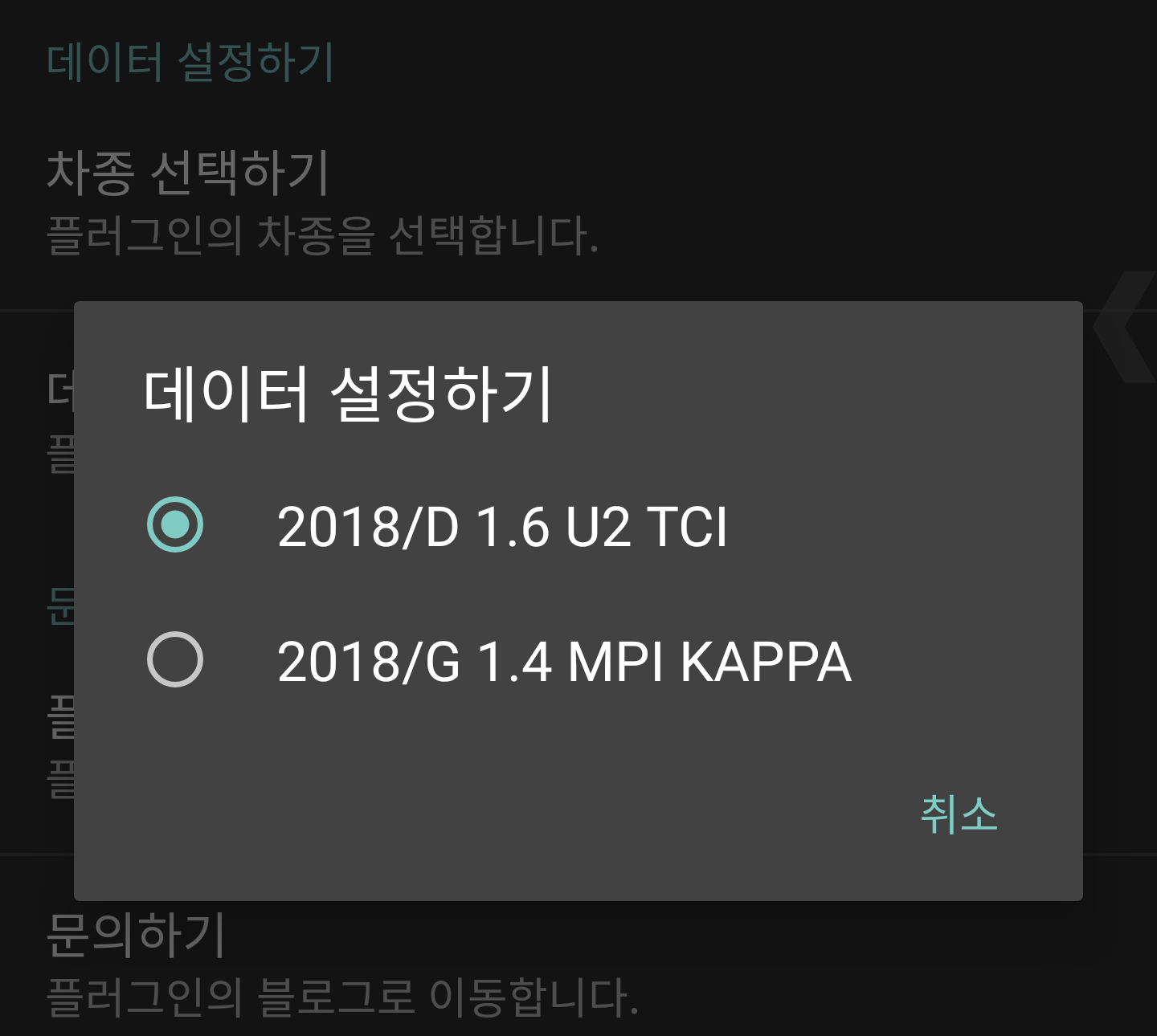선택한 차종의 세부 데이터를 선택할 수 있다. 엔진 형식에 따라 조회 할 수 있는 데이터가 상이하기 때문에 반드시 정확하게 선택해야 한다.