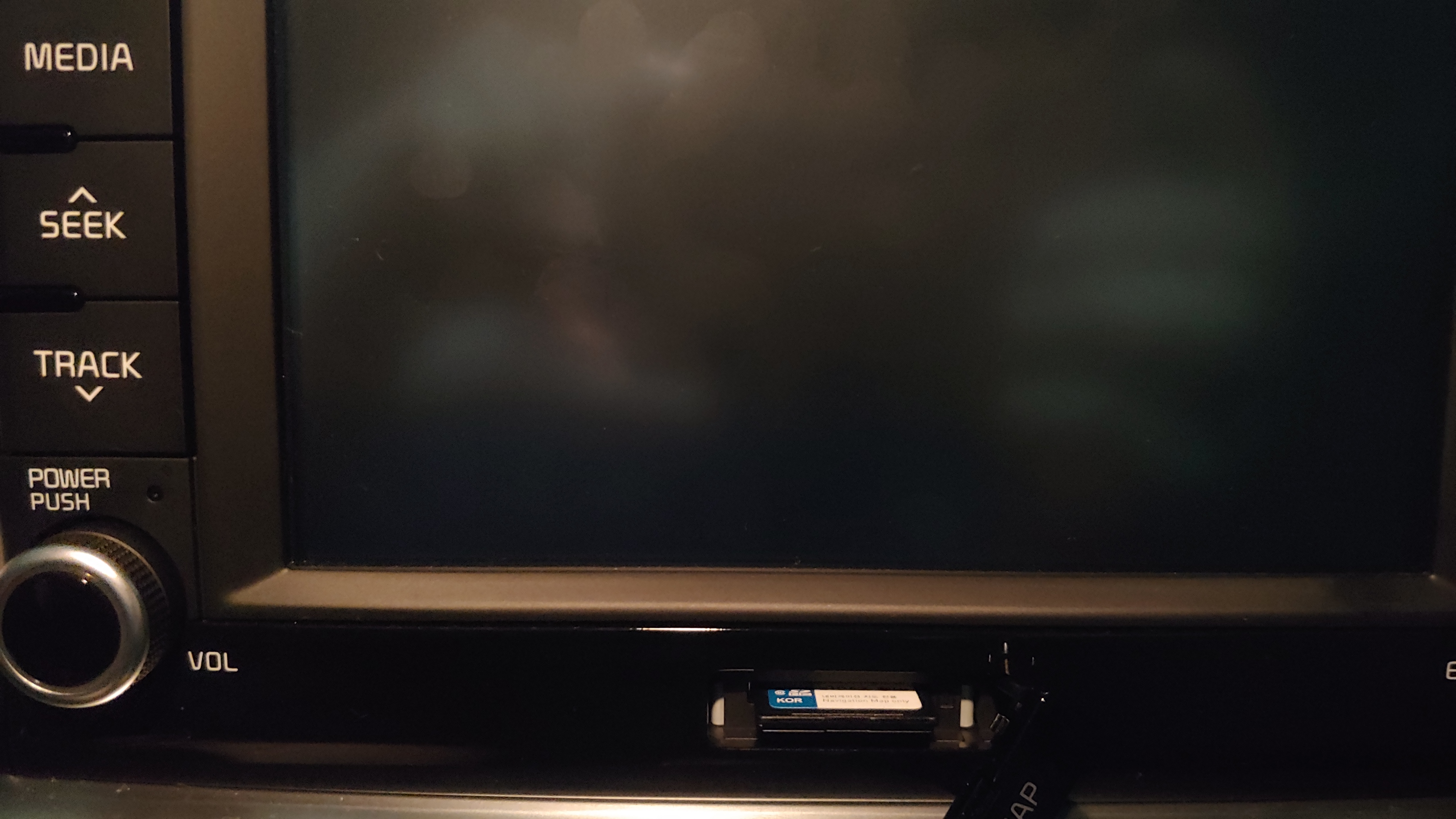 차량의 내비게이션으로부터 SD 카드를 꺼낸다. SD 카드 슬롯은 차량마다 위치가 다를 수 있으며, 스토닉의 경우 내비게이션 중앙 하단에 배치되어 있다. 커버를 열고 카드를 눌렀다가 놓으면 SD 카드가 토출된다.