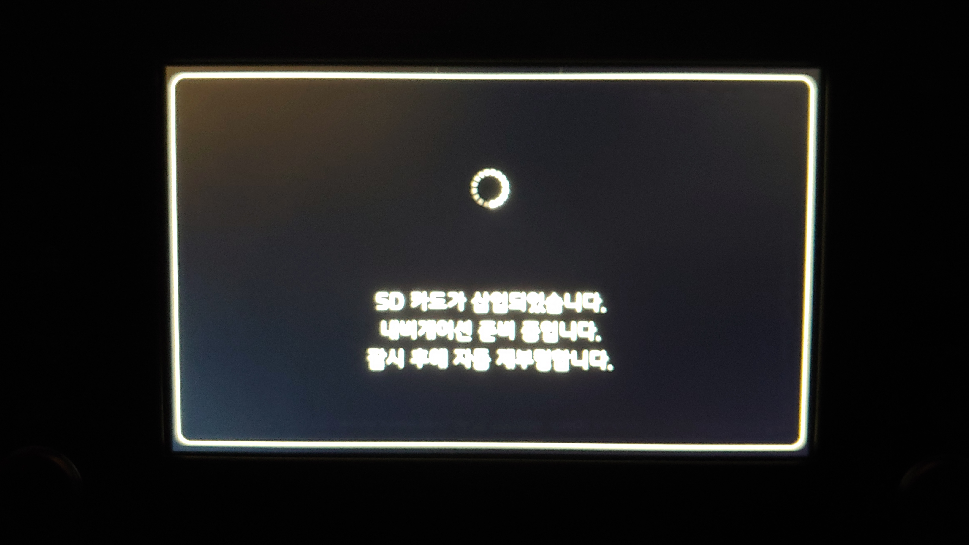 SD 카드를 PC로 부터 분리한 후 차량으로 이동하여 다음의 순서대로 업데이트를 진행하면 된다.