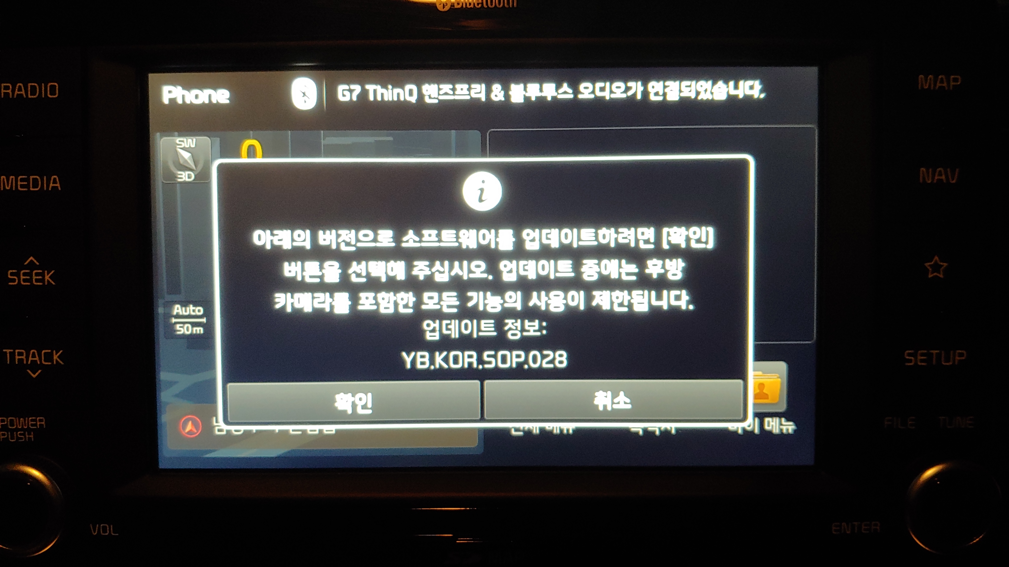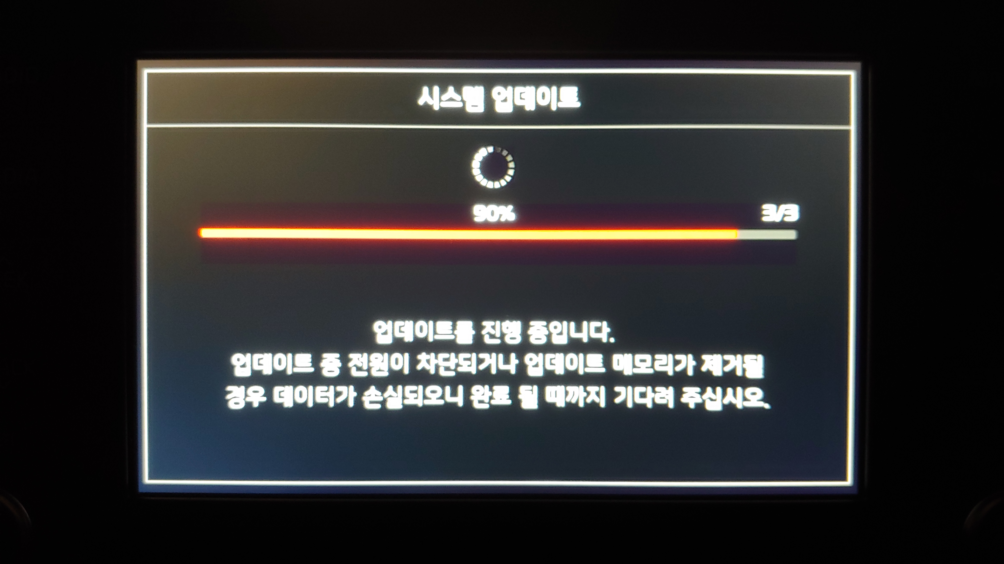 하지만, 위 순서대로 할 필요 없이 SD 카드를 슬롯에 삽입하고 시동을 걸면 자동으로 메뉴가 팝업된다. 내비게이션 화면에 나타나는 순서에 따라 버튼을 터치하고 기다리면 업데이트가 완료된다.