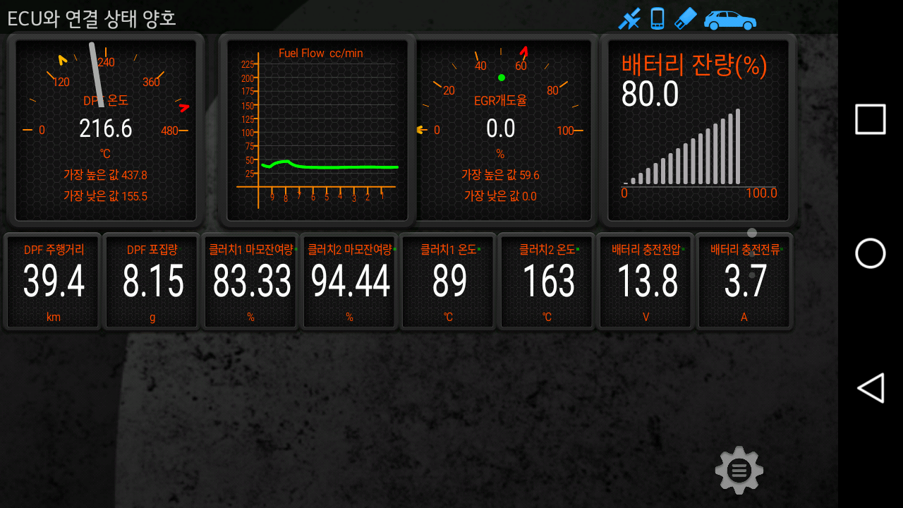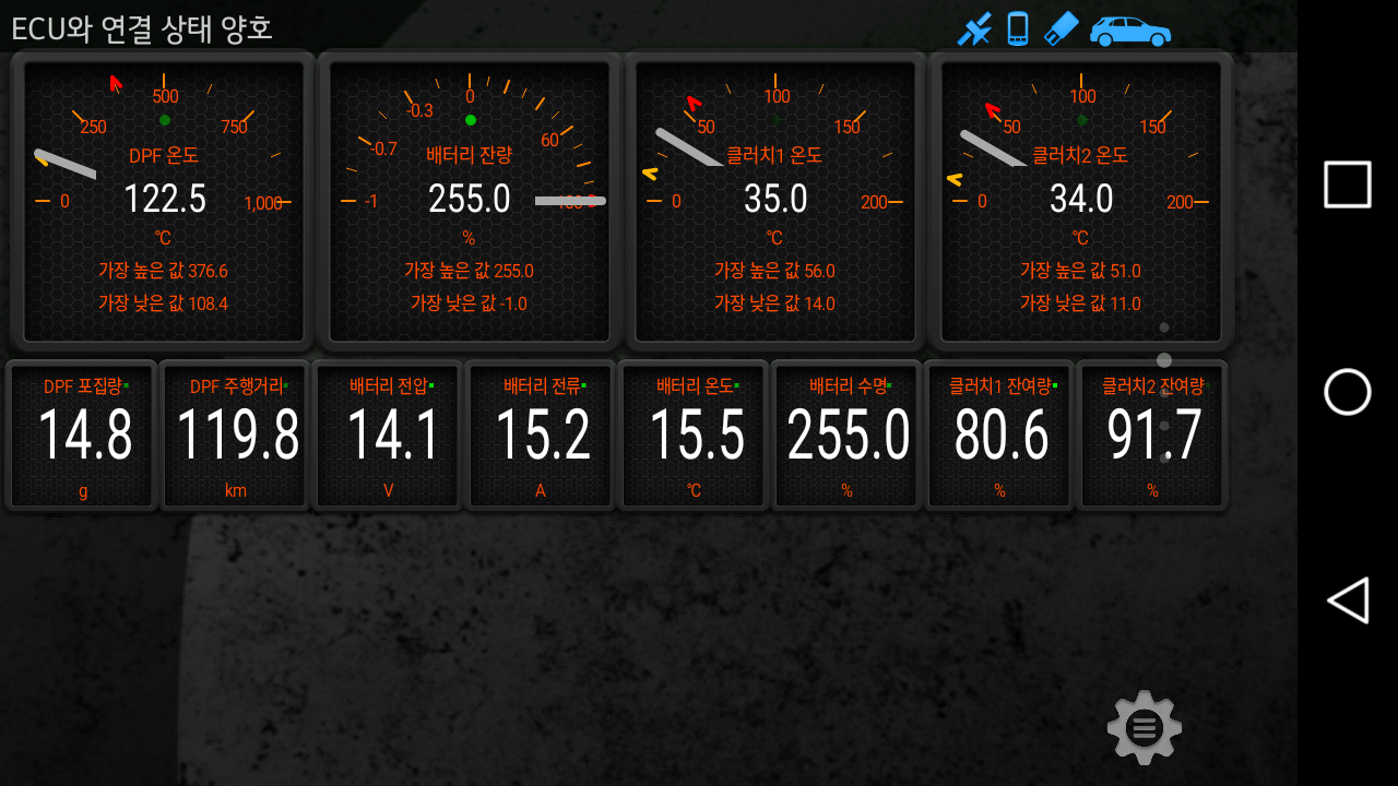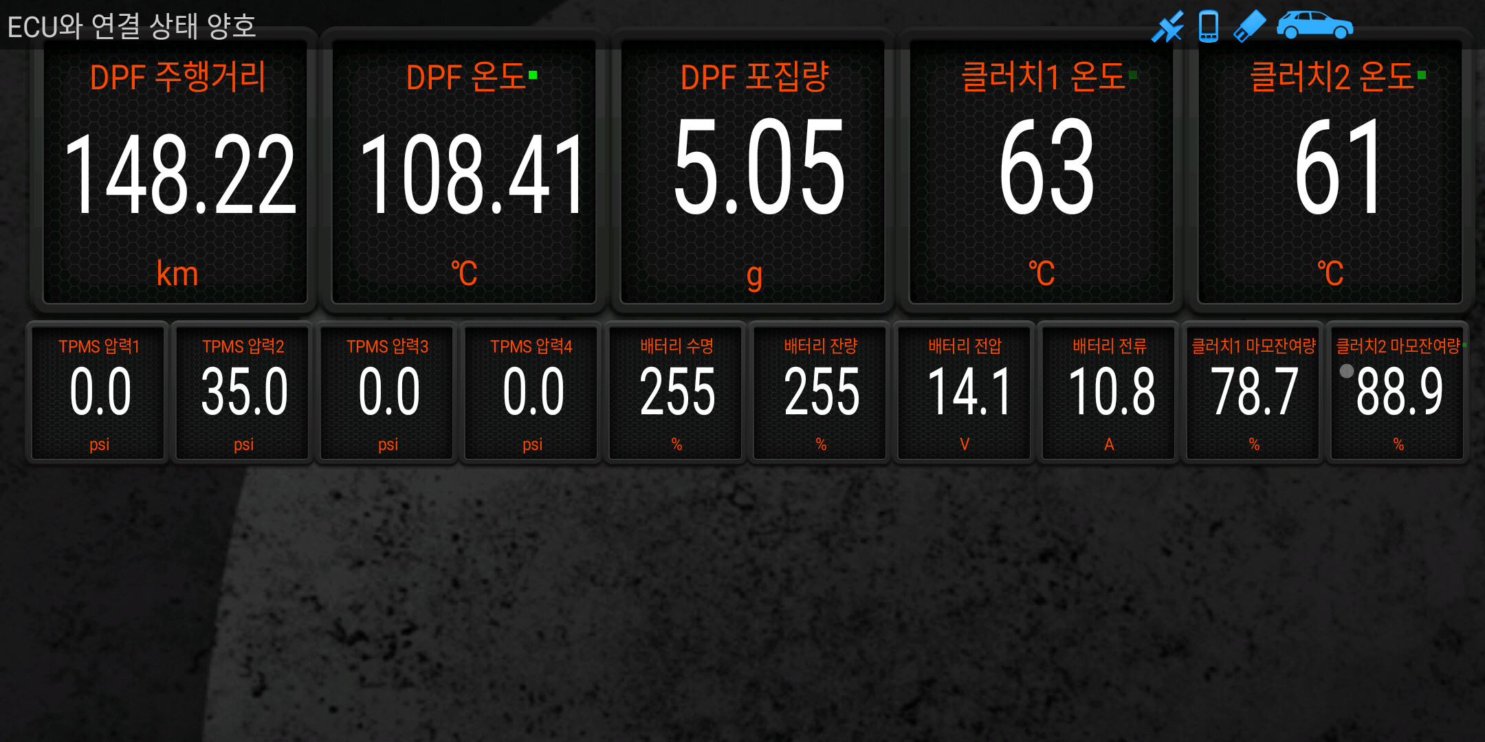 위 사진에서 배터리 잔량과 수명이 255로 나타나는 것은 연료필터 교환 후 IBS 활성화가 되지 않아 나타나는 현상이다.