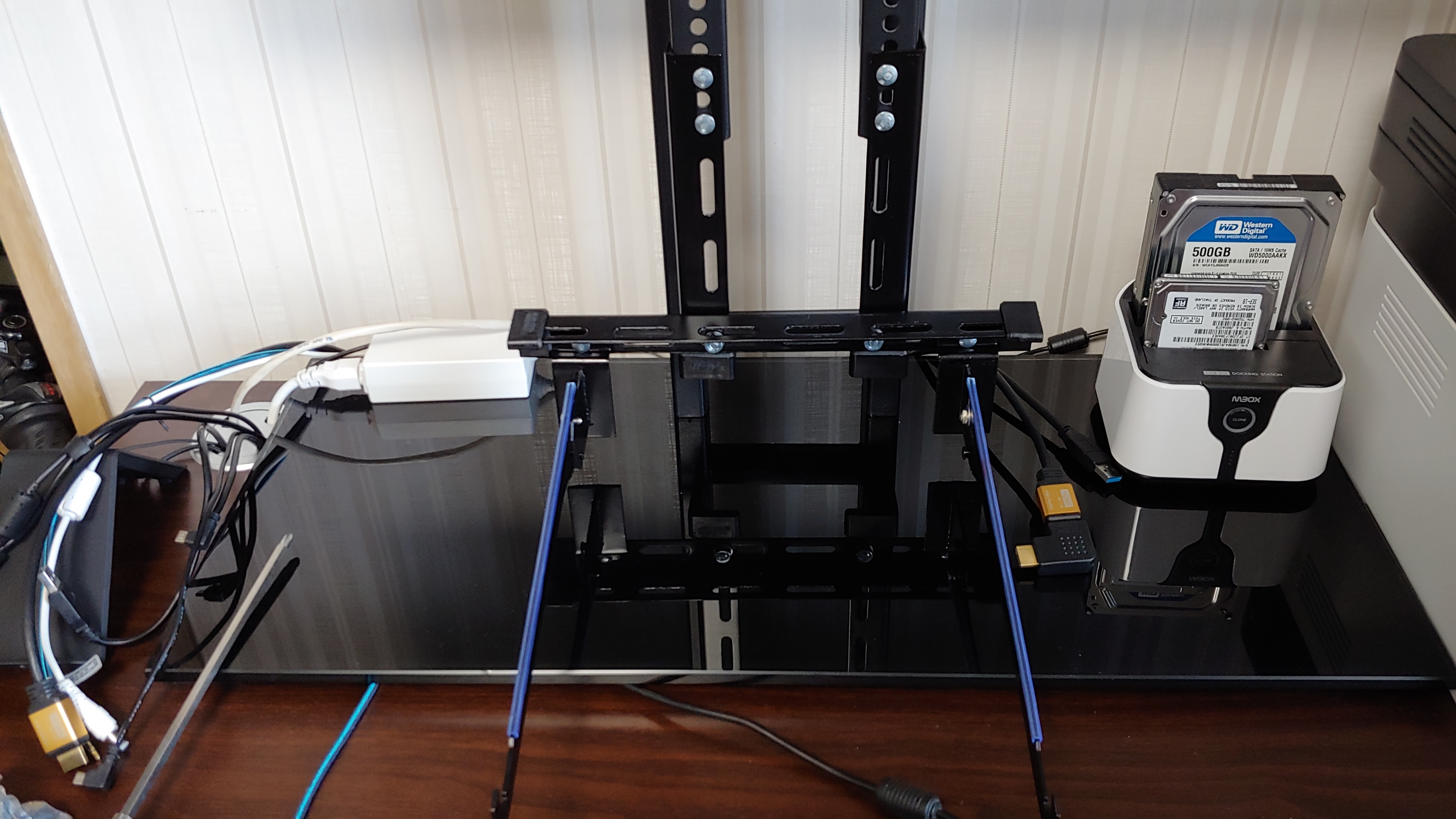 필자는 베사마운트를 지원하는 모니터를 TV 거치대에 연결하여 사용하고 있다.