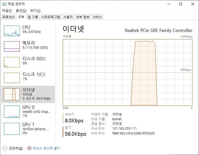 하지만 필자의 경우는 회선에 이상이 있어 속도가 떨어진 것이 아니었다.