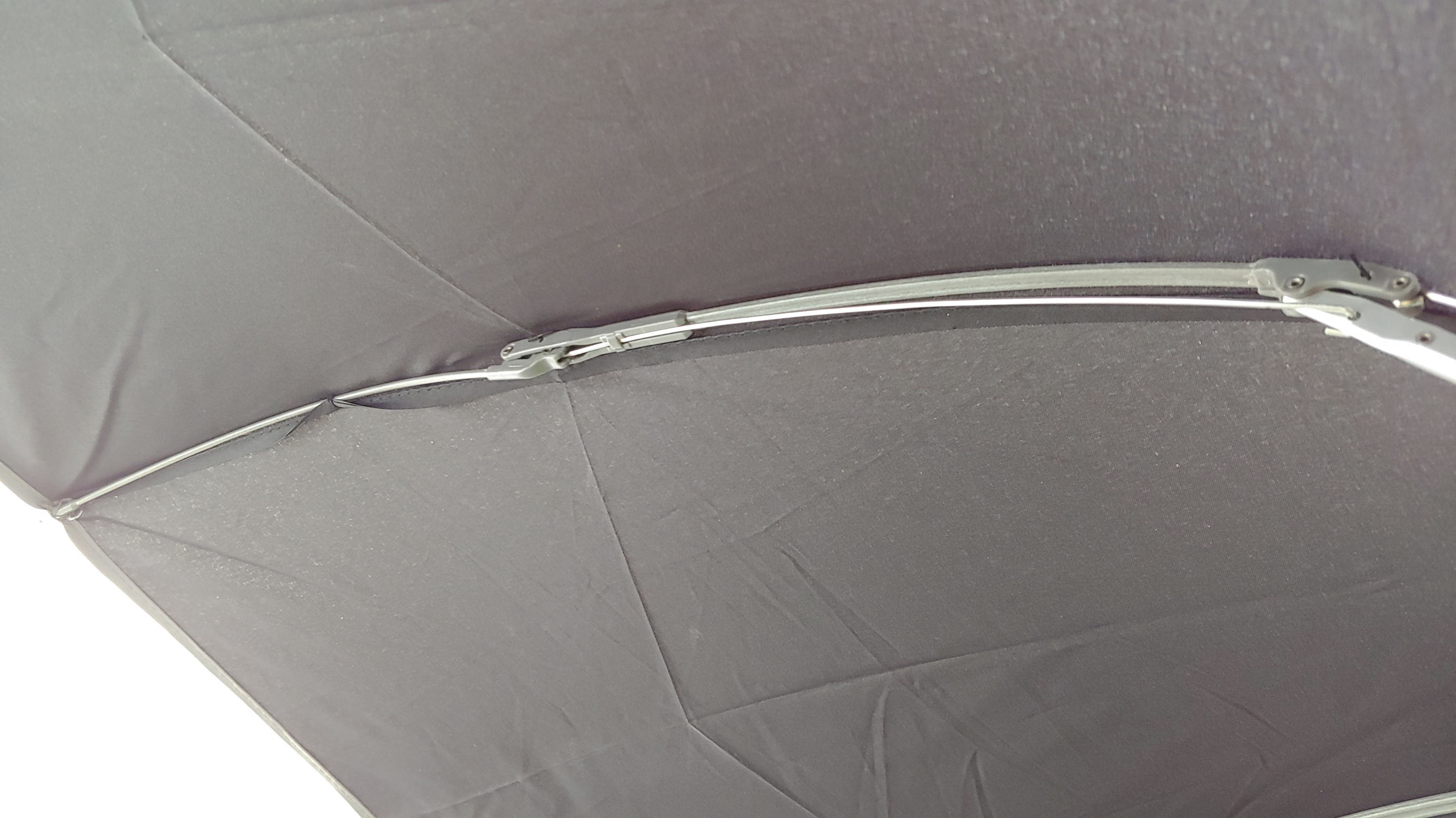 우산살은 10개이며 중앙 부분은 알루미늄, 끝부분은 플라스틱 재질로 제작되어 있다. 조금이나마 가볍게 만들려는 노력인지는 모르겠지만 부드럽게 휘어지기 때문에 부러질까 불안해 보이지는 않는다.