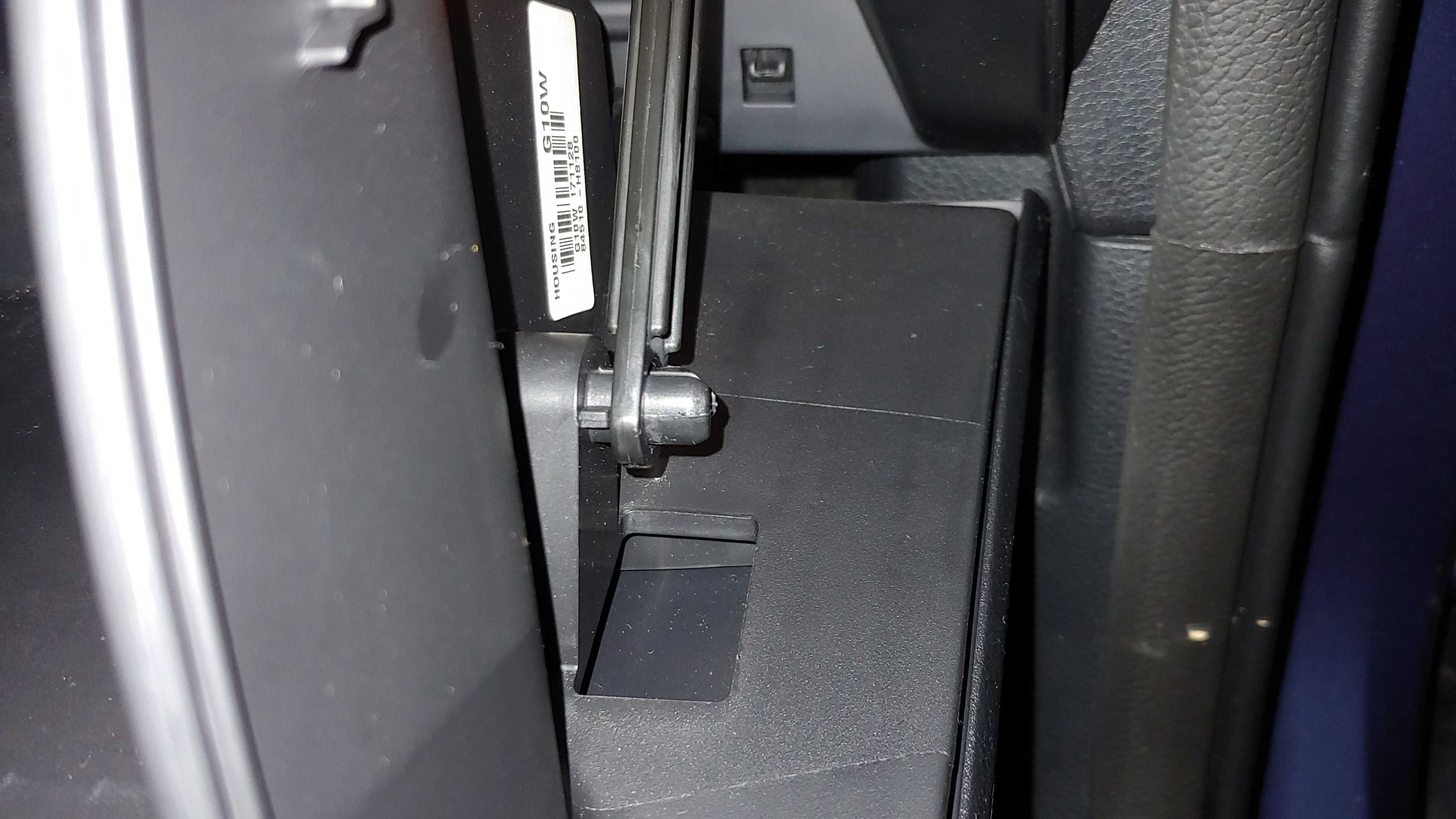 스토퍼를 탈거하면 글로브박스가 조금 더 열리지만, 에어 댐퍼로 인해 작업공간을 확보할 수 없으므로, 우측 외부의 에어 댐퍼 링크를 해체해야 한다. 엄지와 검지로 링크 부위를 힘주어 누른 후 피스톤 로드를 외측으로 살살 당기면 빠진다.