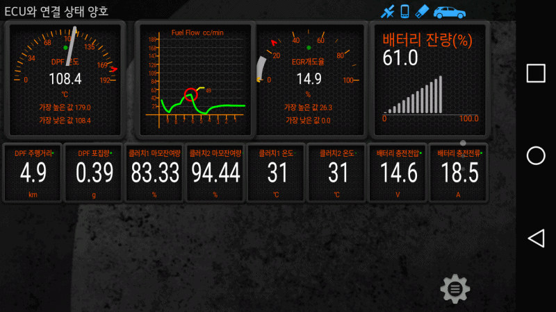 이번 테스트에서의 특기사항은 DPF 포집량 0.39 g에서 재생이 완료된 점이다.