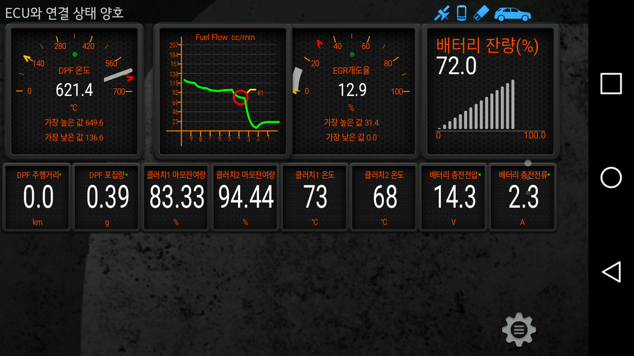 이번에는 휴대전화의 스크린샷을 이용하여 수동으로 기록을 남겼고1, 포토스케이프를 이용하여 Animated GIF를 만들어 첨부한다. 마지막으로 DPF가 재생된 후 55 km가 넘어가면서 15.53 g과 15.92 g 이 사이에서 오락가락 2하였다.