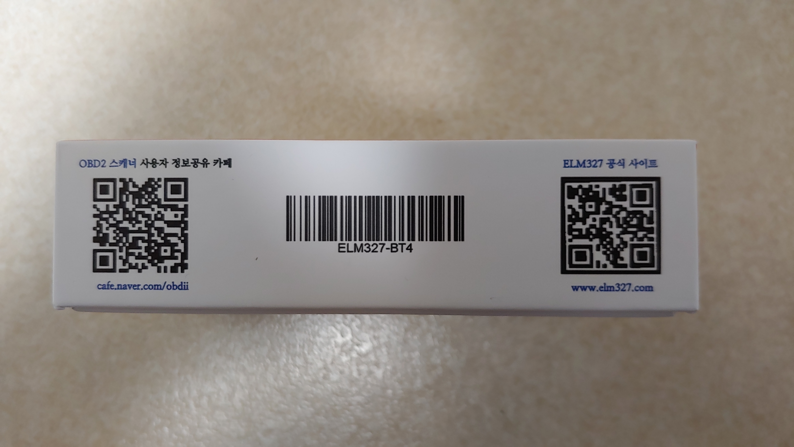 패키지는 종전 제품보다 고급스럽게 박스 포장으로 이루어져 있다. 제품은 박스 내부에 제품이 안전하게 포장되어 있고, 박스 좌측면에는 카페와 ELM327 사이트 주소가 표기되어 있으며, 우측면에는 KC 적합성평가 인증 정보를 포함한 제품 정보가 기재되어 있다.