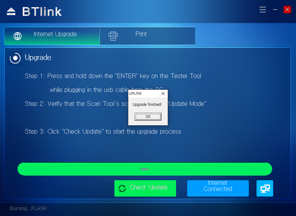 아래 이미지들은 PC에 연결하여 BA201의 펌웨어를 업데이트 하는 과정을 보여준다.