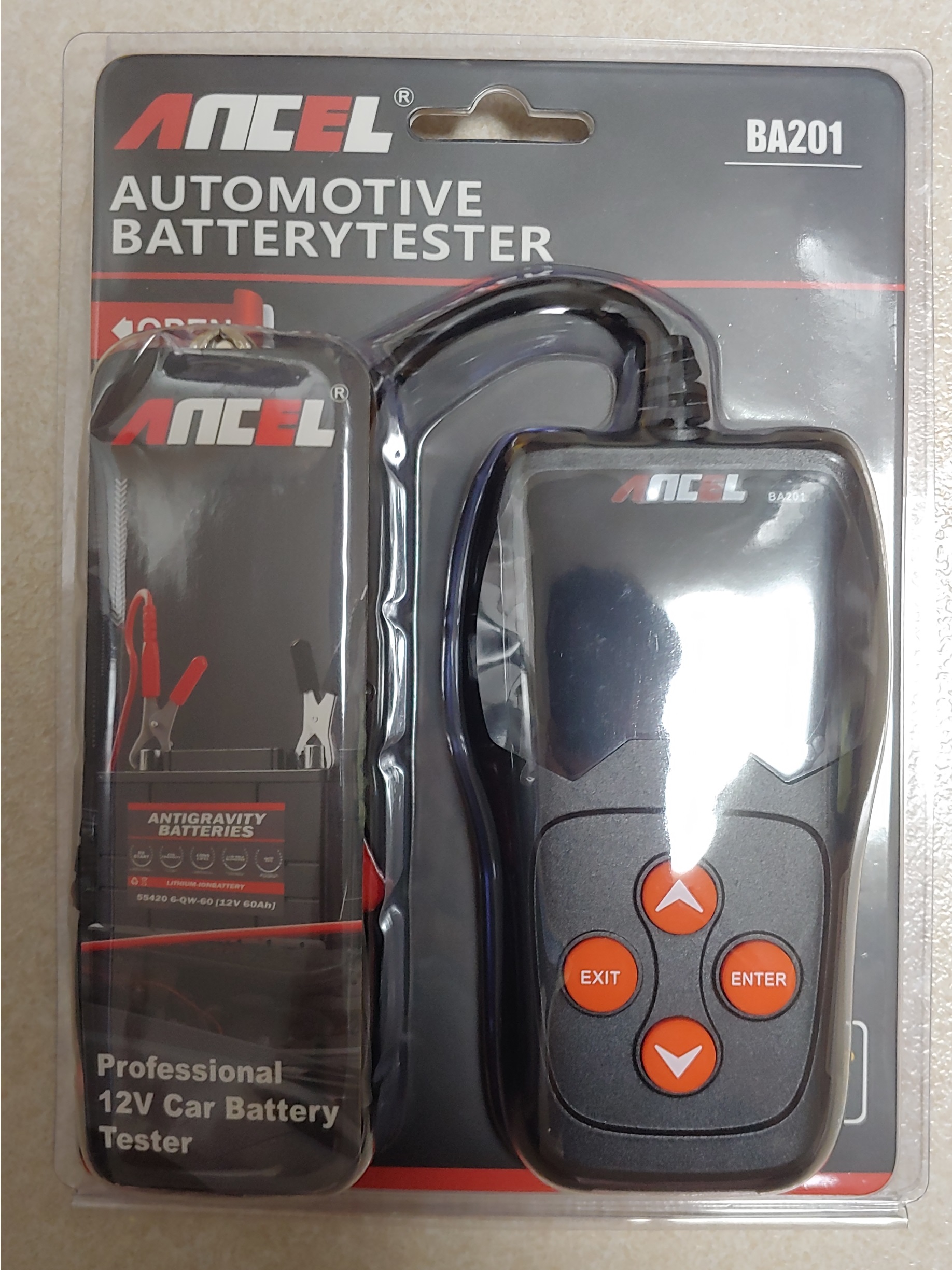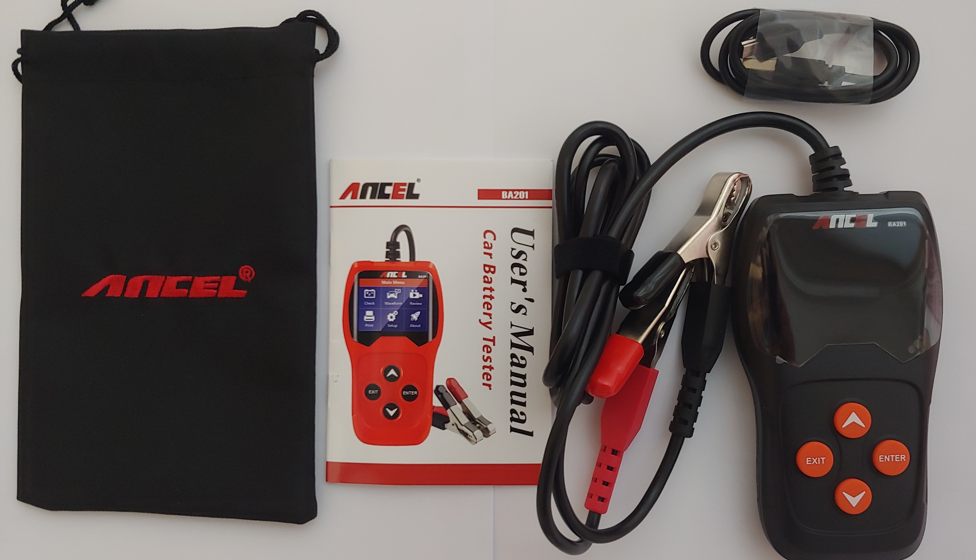 필자가 구매한 배터리 테스터는 ANCEL BA201 Automotive Battery Tester이다. 패키지에는 테스터 본체, USB 케이블, 사용자 매뉴얼 및 보관용 파우치가 포함되어 있다.
