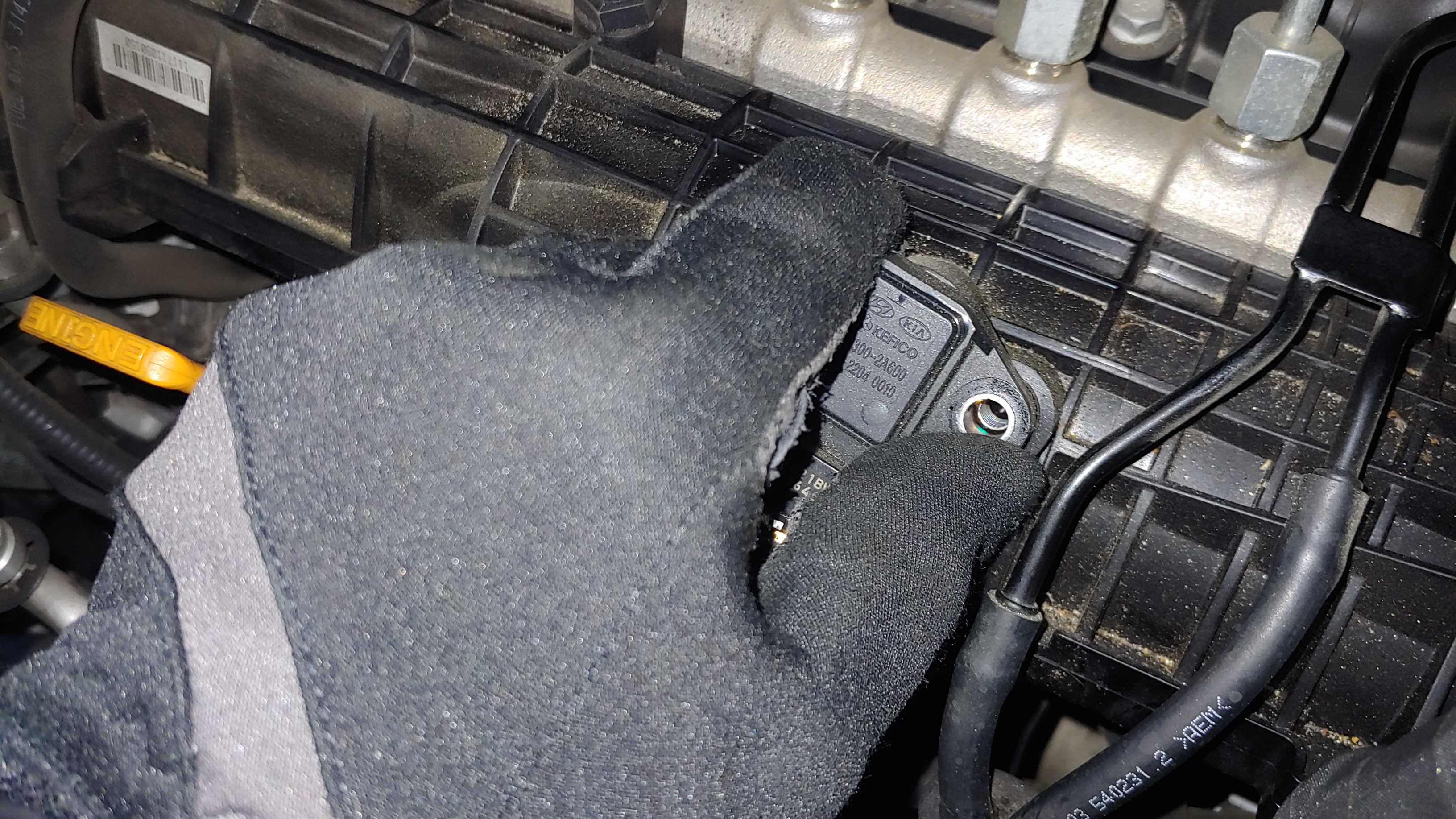 엔진 후드를 열고 범퍼 앞에 서서 디자인커버 하단을 보면 부스트 압력 센서(BPS)가 눈에 보인다. 디자인커버를 분리한 후 센서 커넥터를 잠금장치를 눌러 탈거2하고, 장착 볼트를 공구로 풀어낸다. 마지막 과정에서 센서를 잡고 살짝 비틀면서 흡기매니폴드로 부터 분리하면 된다.