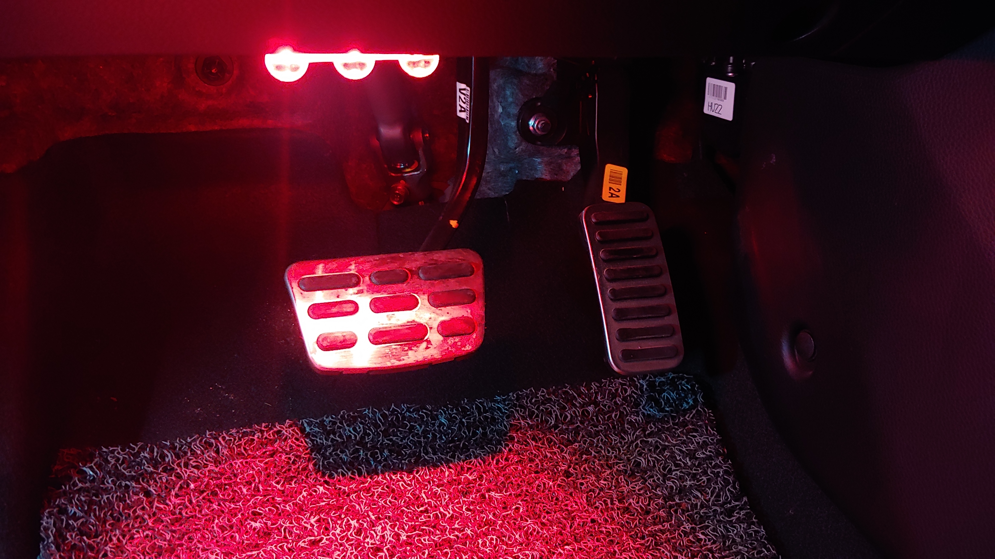 페달 블랙박스를 설치한 후, 야간에도 촬영이 될 수 있도록 풋등을 설치했다.