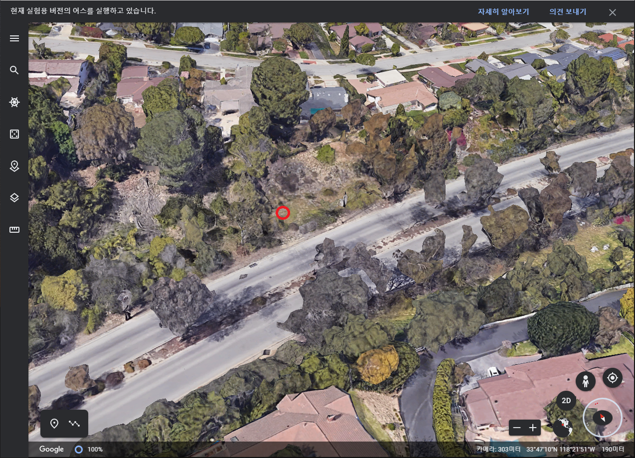 CNN 영상으로 사고지점을 확인한 필자는 정말 차량이 굴러떨어질 정도의 낙차를 가진 벼랑이 아니라는 생각이 들었고, 곧바로 구글어스로 사고지점을 확인해 보았다.