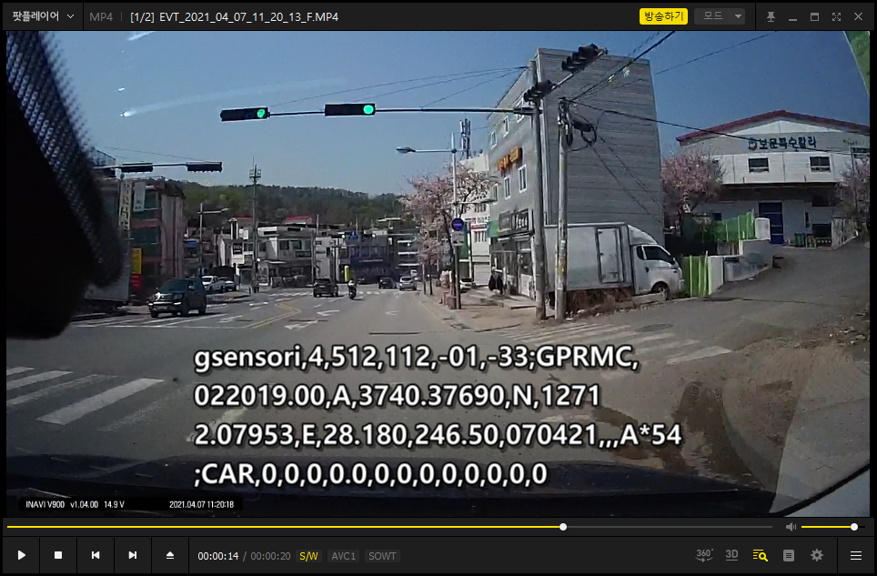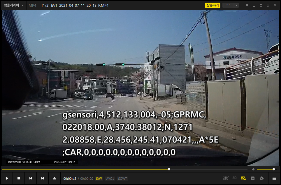 블랙박스가 구형이라 그런지 사후지원이 되지 않아 영상 자체에 속도가 표시되지 않는 블랙박스를 페달용으로 사용하는 관계로 동영상 플레이어에 자막 형태로 표시되는 NMEA를 분석하여 속도를 산출해 보았다.
