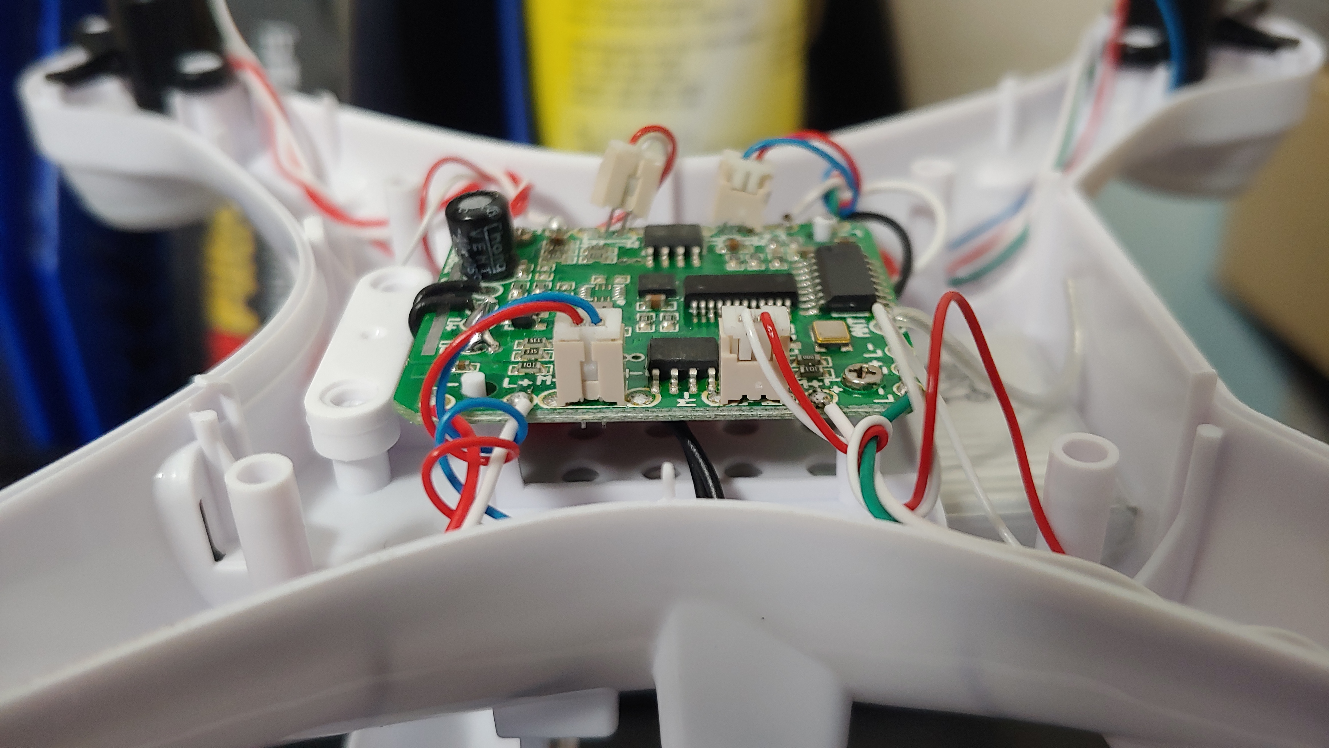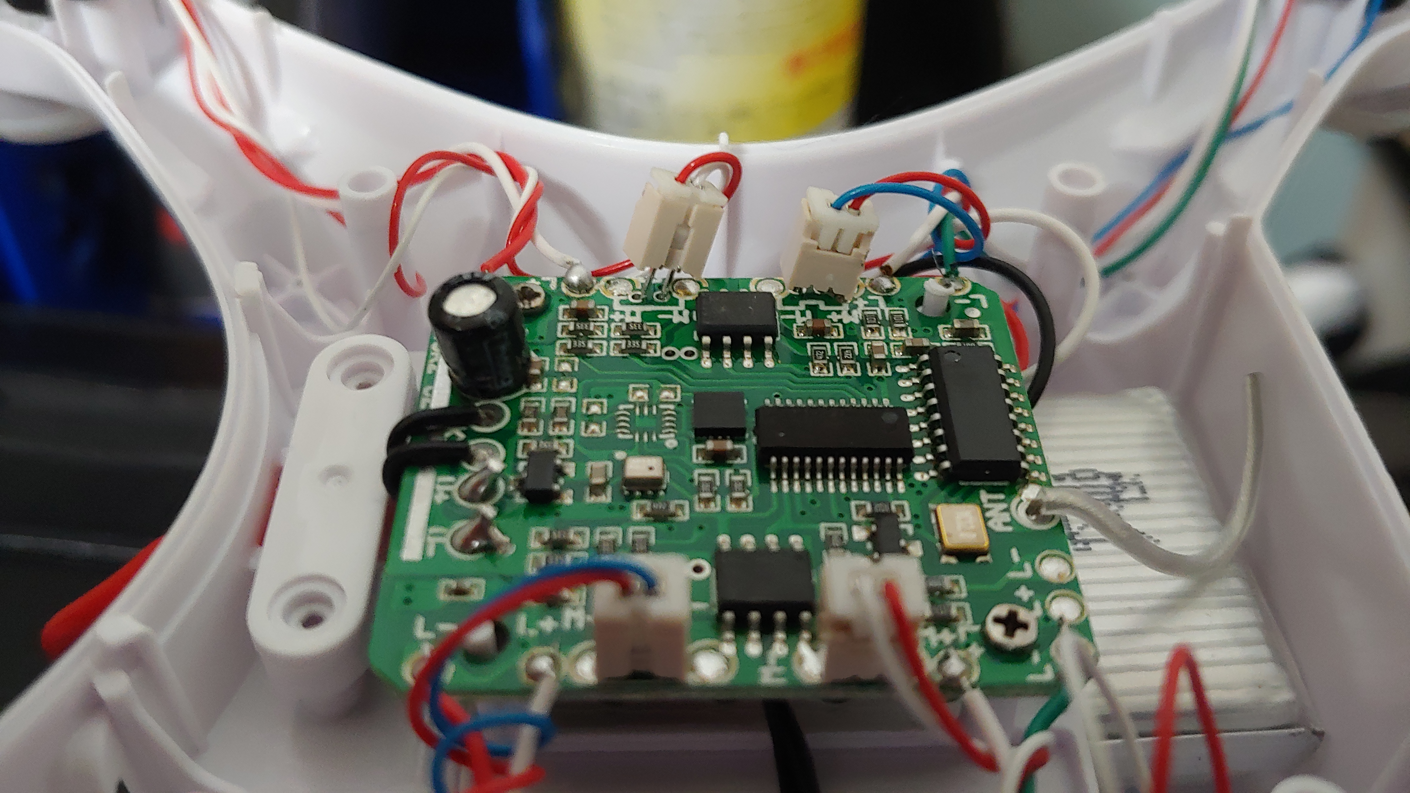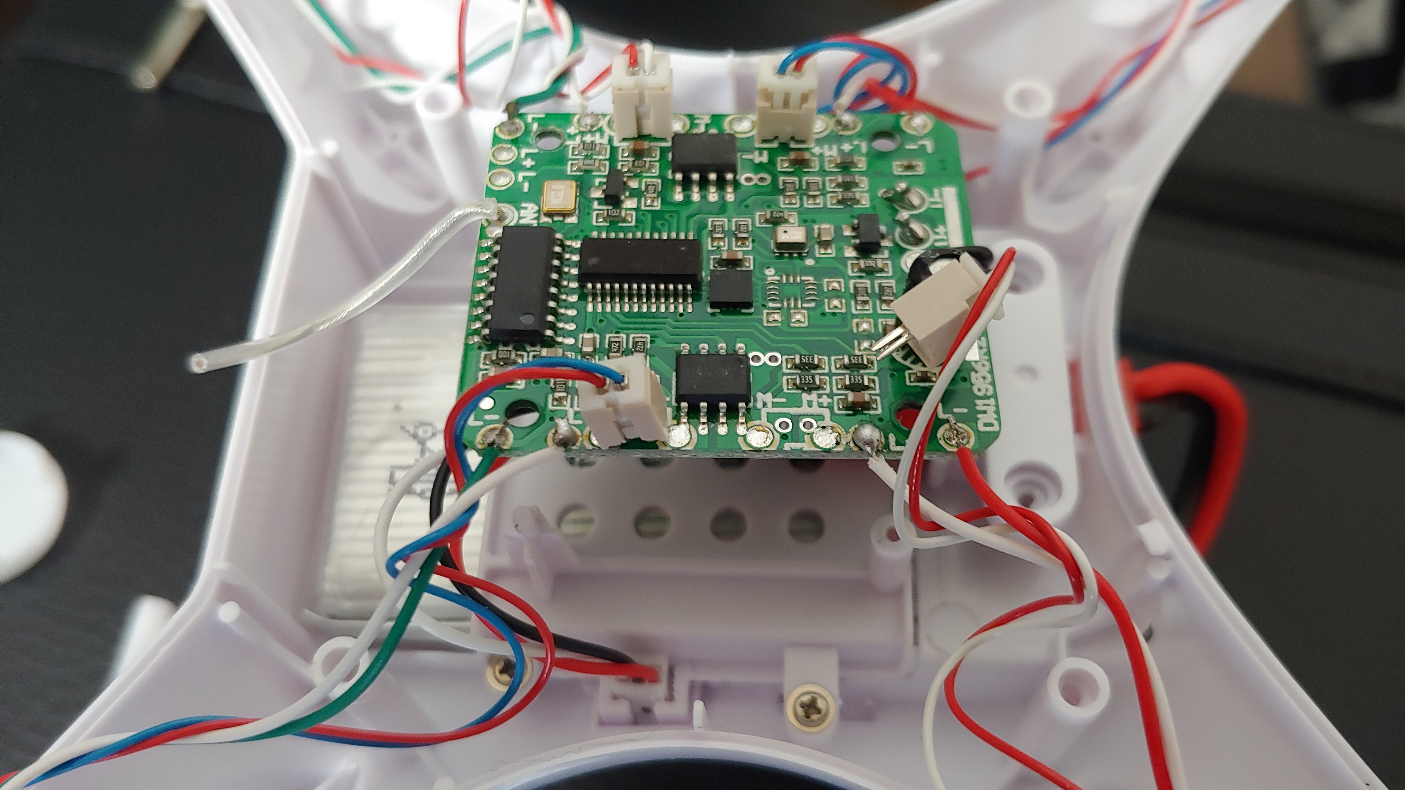 바디 케이스를 열어 보니, 네 개의 모터 커넥터 중 한 개는 PCB에 살짝 걸친 상태였고, 한 개는 들 뜬 상태로 기울어져 있었다.