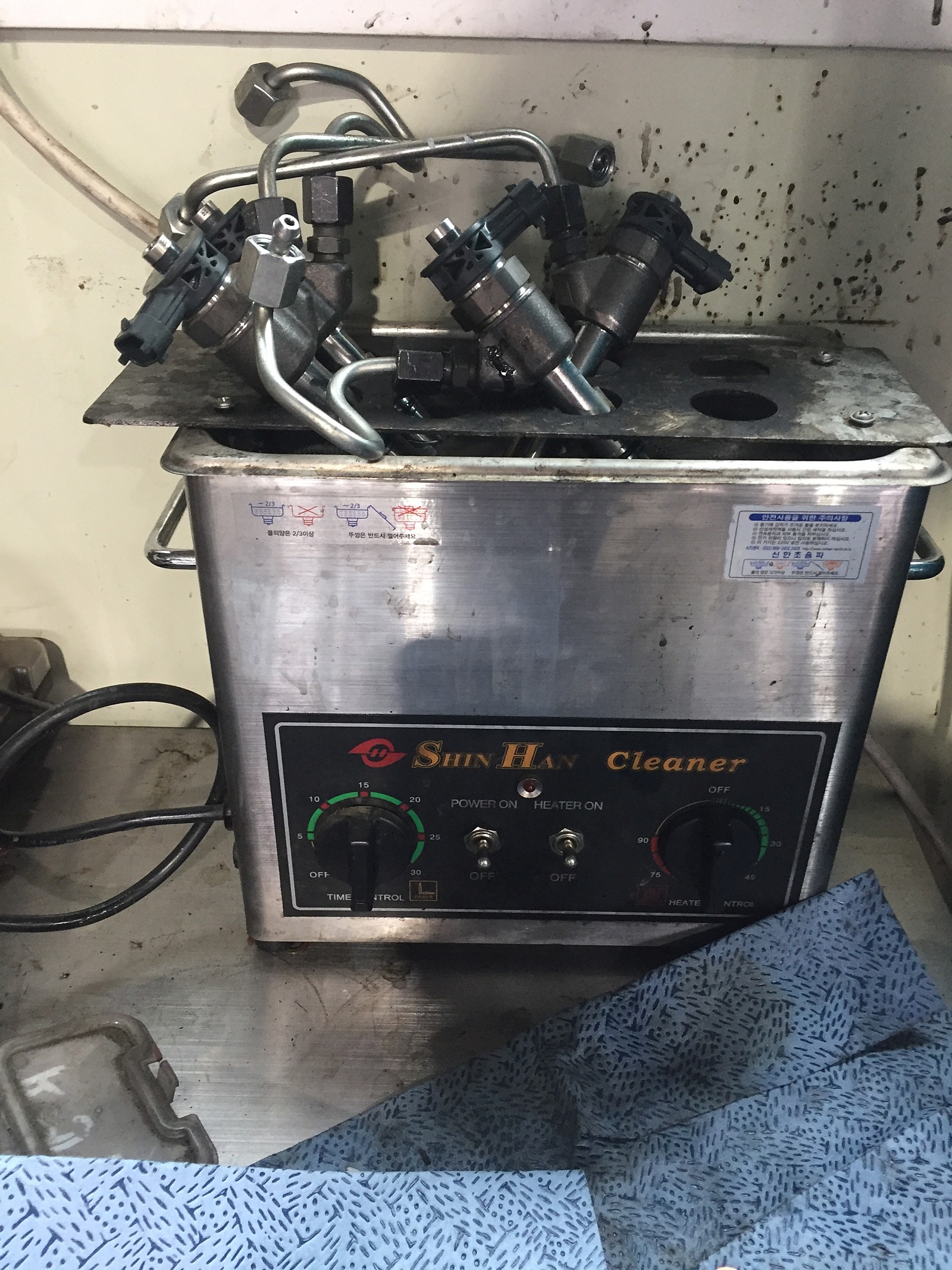 인젝터 크리닝 전/후의 상태이다 주행거리가 짧은 만큼 크게 오염되지는 않은 것 같다.
