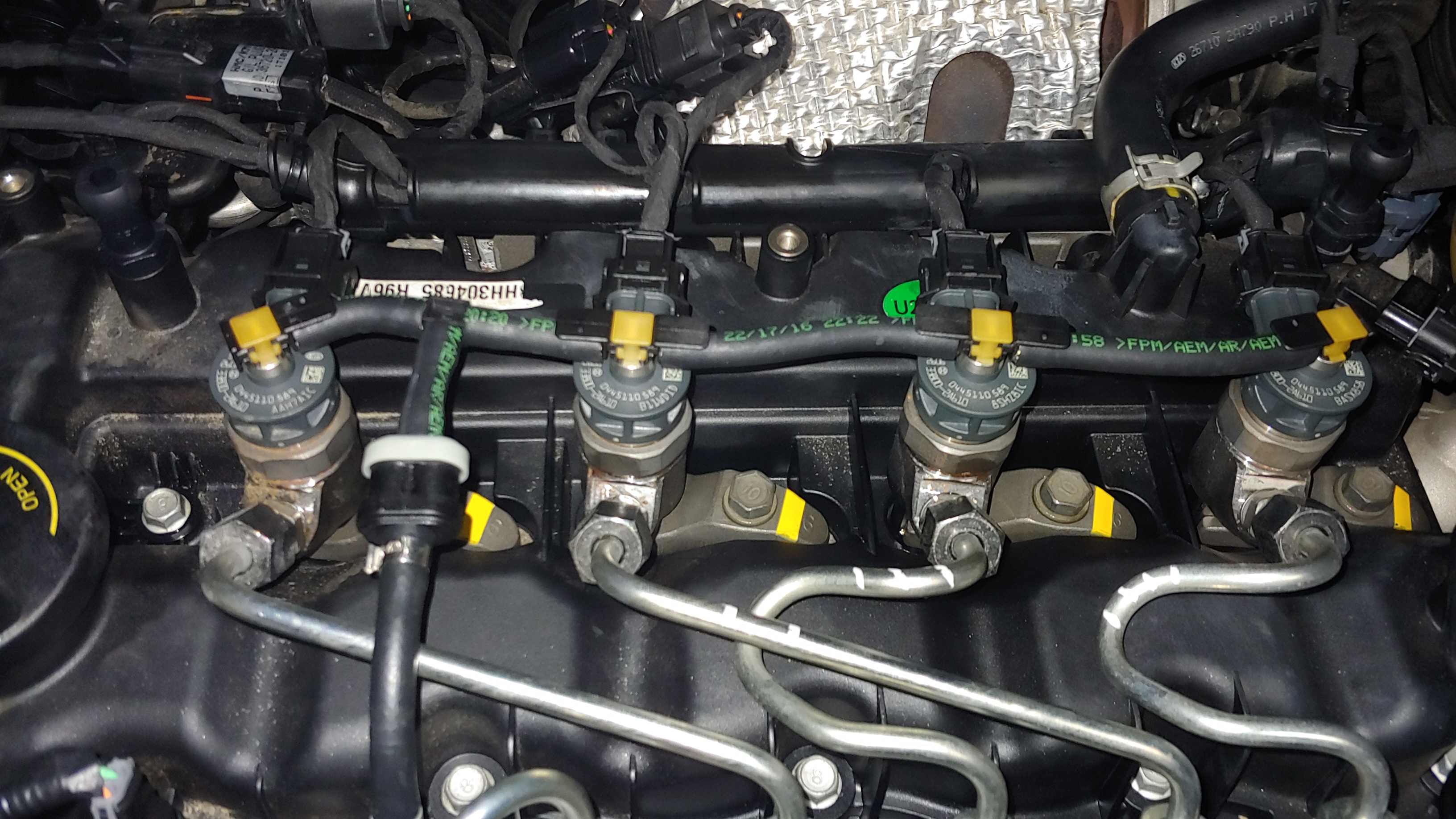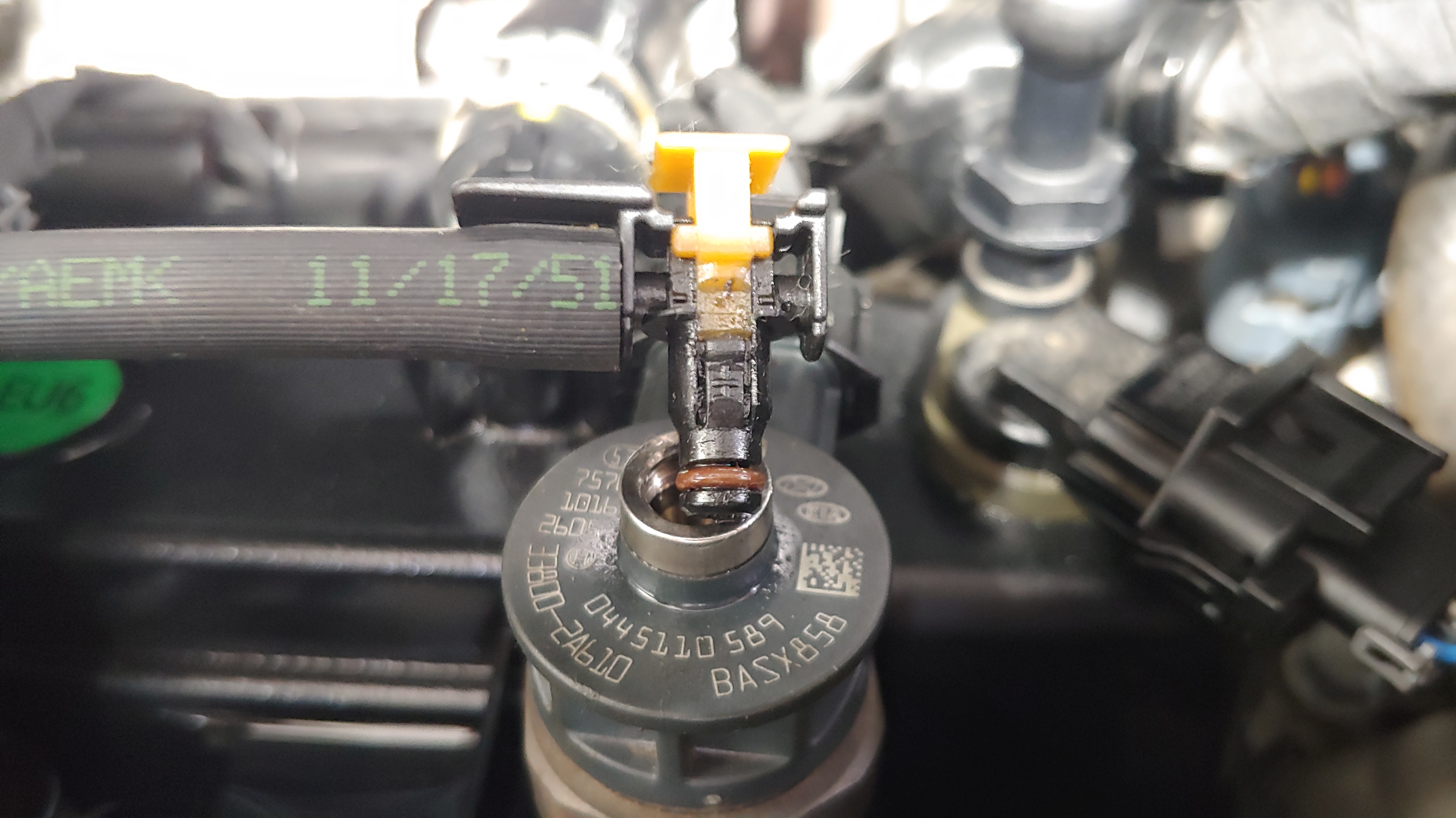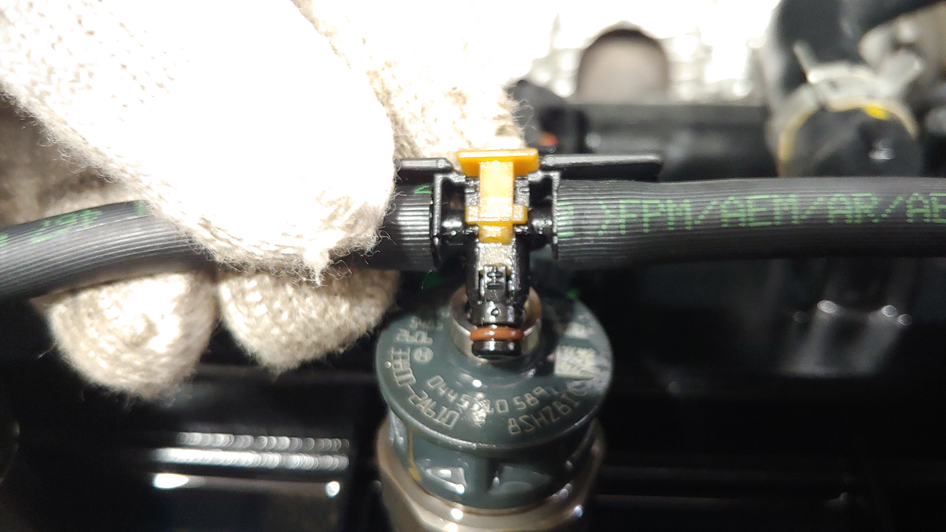 연료 리턴 호스의 인젝터 연결 부위를 하나씩 확인해 보았더니, 3번 인젝터 연결 부위가 느슨해져있는 것을 확인할 수 있었다.1 이로 인해 리턴된 연료가 엔진룸으로 새어 나온 것으로 여겨진다.