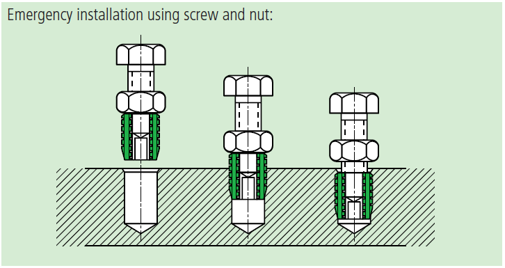 설치용 전용 도구가 비싸기는 한데, 전용도구를 사용하지 않아도, 내경에 맞는 렌치 또는 육각 볼트(와 렌치 또는 스패너) 및 너트(및 스패너)를 사용하면 체결이 가능하다. 물론, 아래 표에서 나타나듯이 구멍치수에 맞는 드릴은 필수이다.