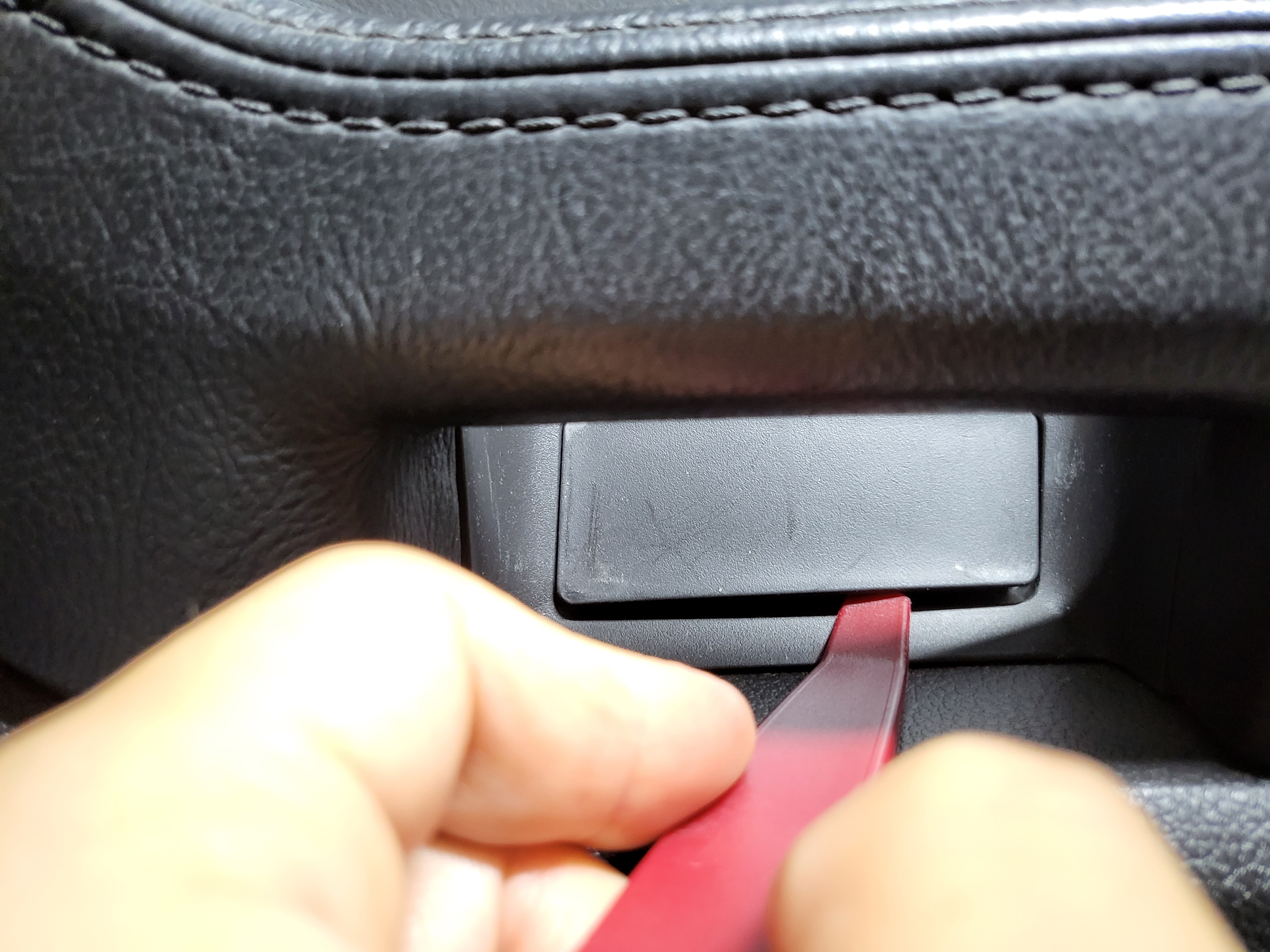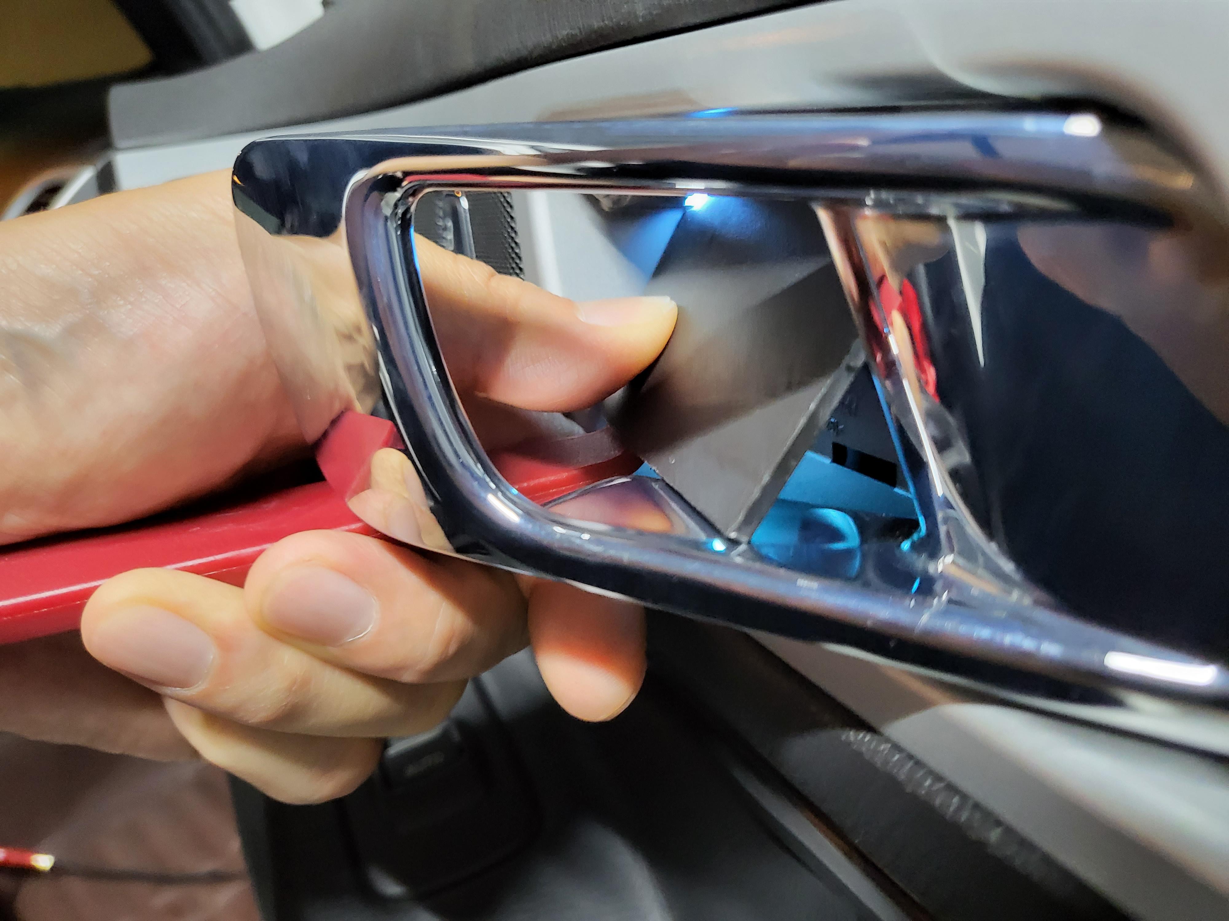 도어캐치 내부 커버는 스냅링 플라이어 또는 끝이 굽은 송곳등을 이용하여 틈을 만든 후 내장재 리무버를 이용하여 탈거할 수 있다.