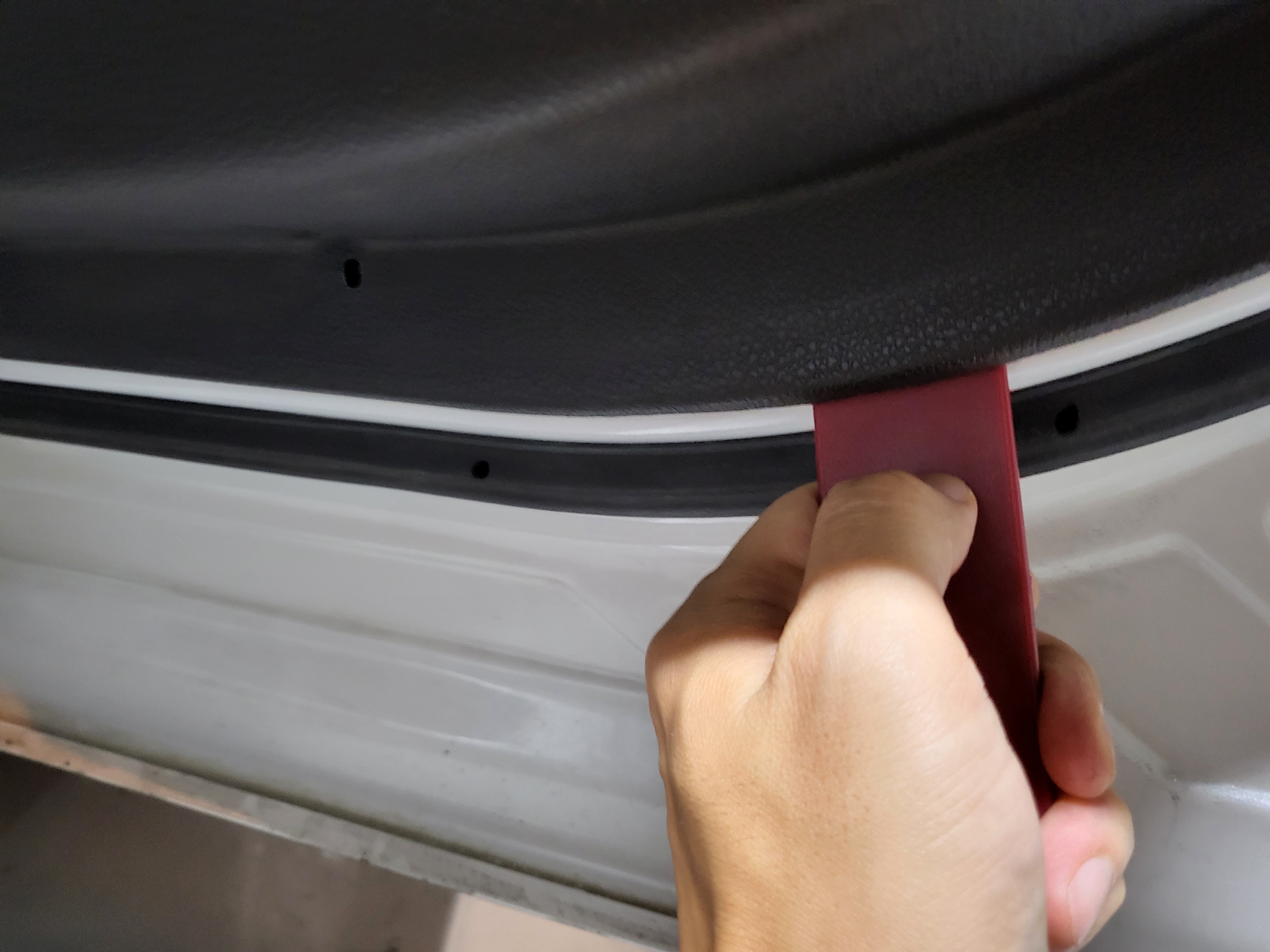 중고 구매 후 가장 눈에 띄던 부위를 보수했다. 도어 내부트림의 상단 접착이 잘 되어 있지 않아 들떠있는 상태.