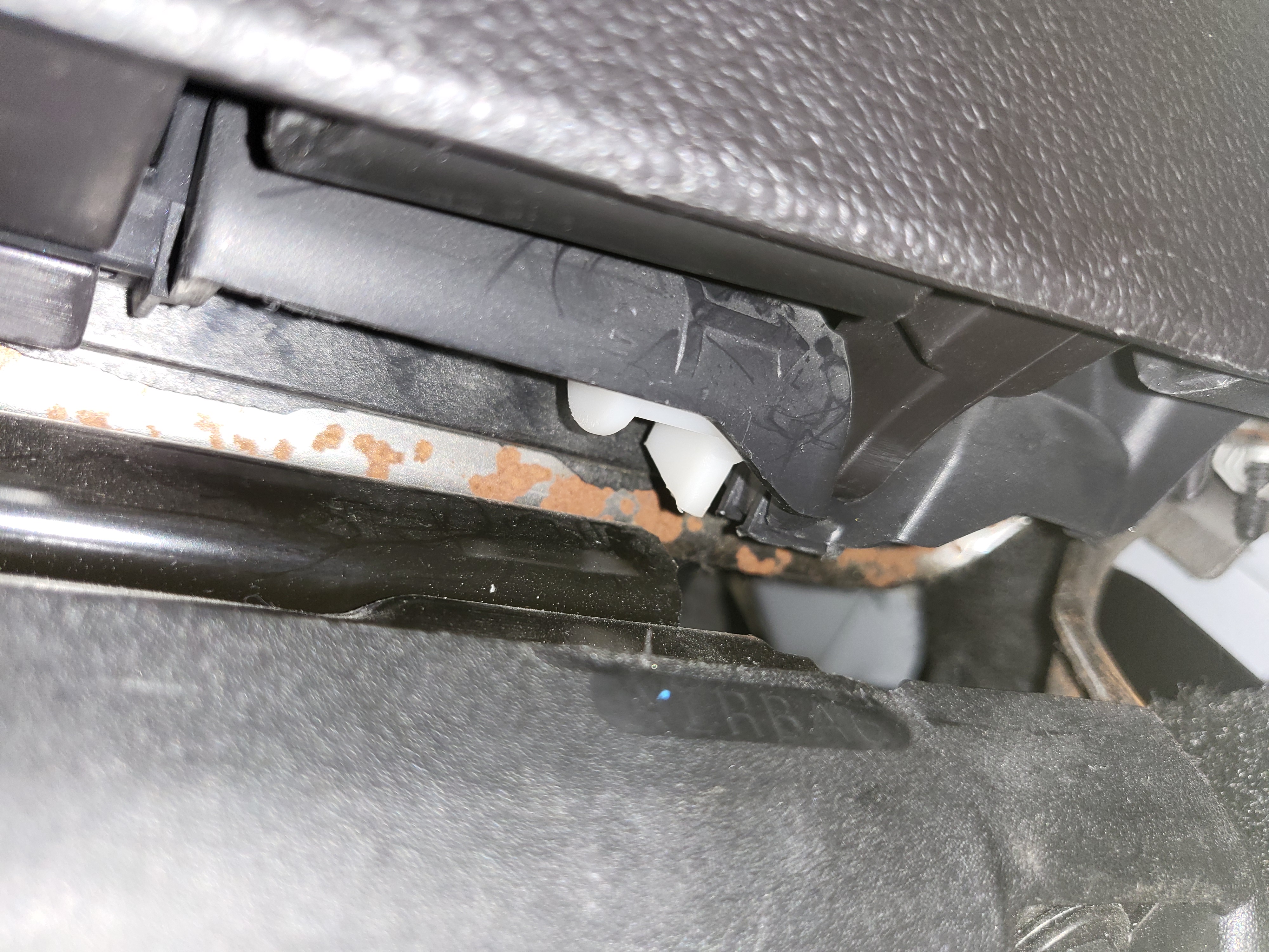 글로브박스를 열고 우측의 완충케이블 연결 고리를 빼낸다.