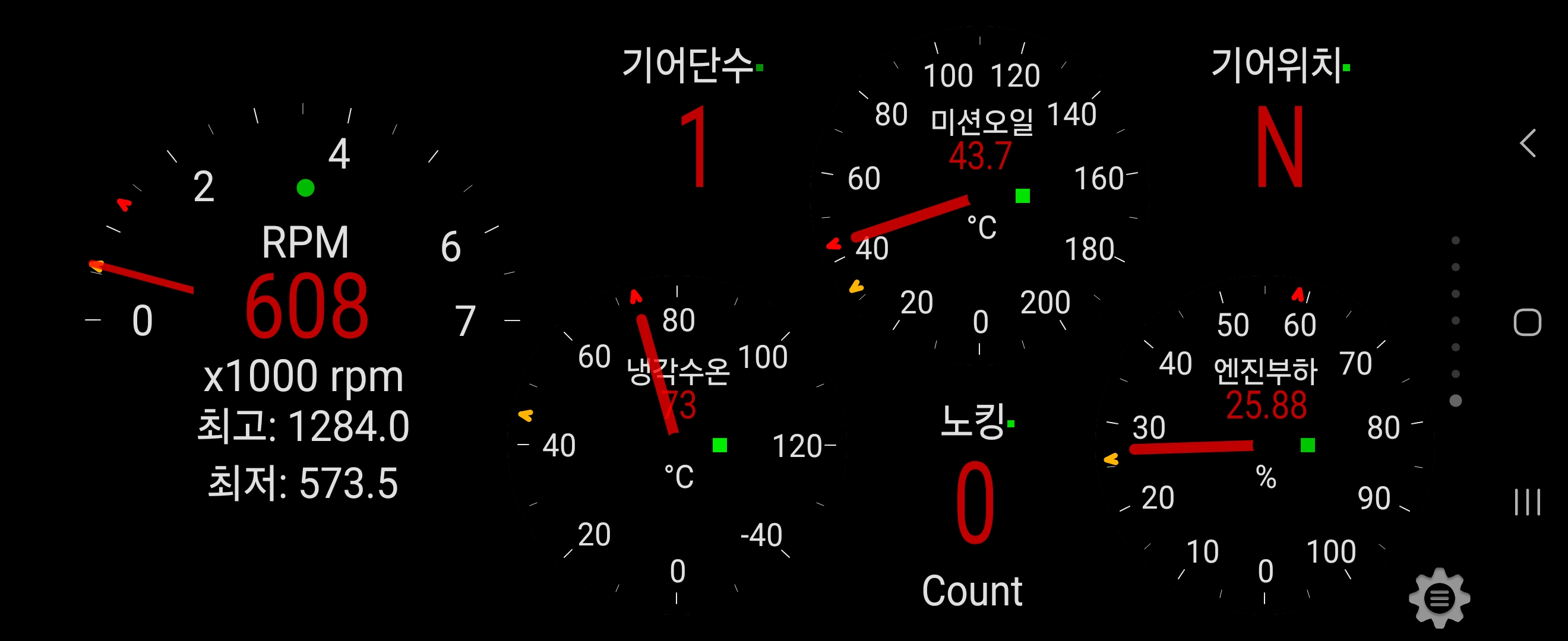 아래 영상은 정차상태에서 변속기를 P->R->N->D->M(1)->M(2)로 조작하면서 확인한 결과이다.
