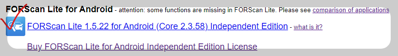 안드로이드용 FORScan은 코딩(Configuration and programming) 및 출력제어(Output Control)를 지원하지 않으며, 위험한 몇 가지 기능을 제외한 서비스 기능(Service functions)이 제공된다.