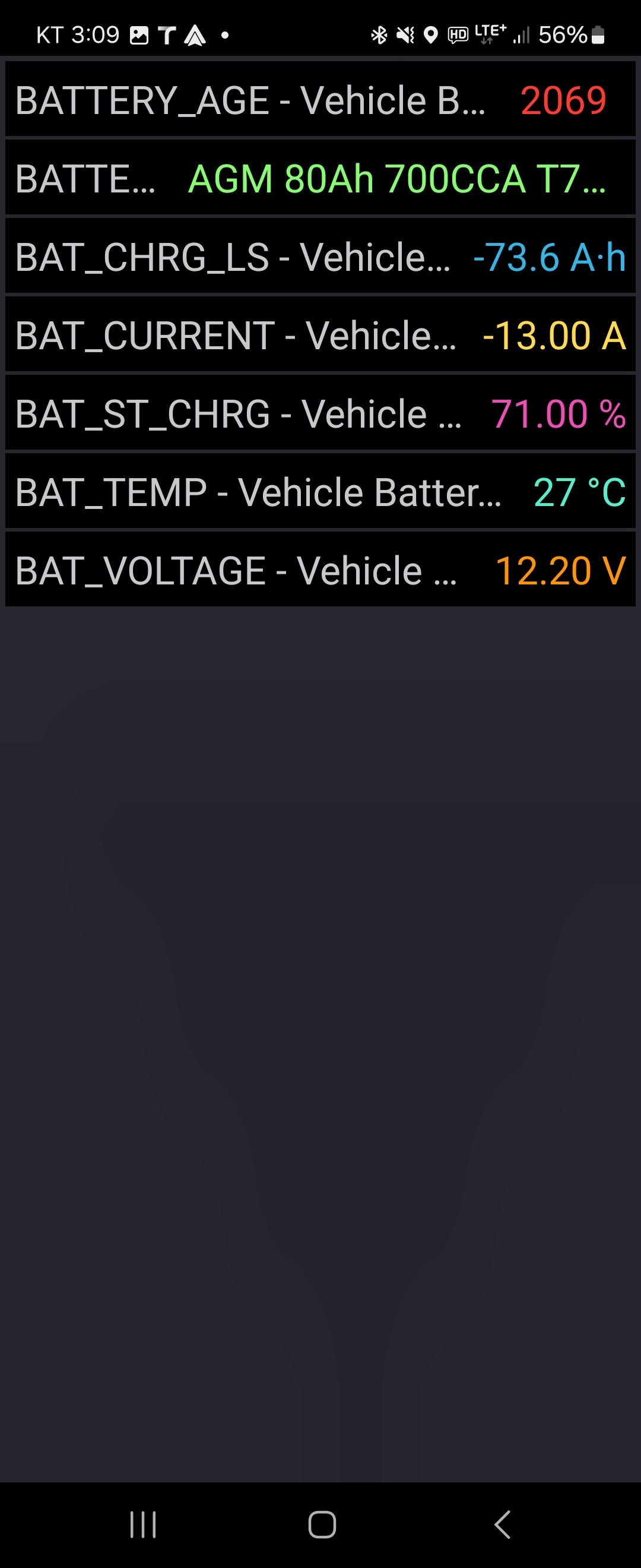 필자는 아래와 같은 PID 들을 선택한 후 재생(Play) 버튼을 터치하여 확인해 보았다. BATTERY_AGE 항목이 2,069 일로 표시된다. 이는 필자가 최근 배터리를 교환할 때 FORScan이 없어서 리셋을 하지 못했는데, 이미 6개월이 경과한 상태로 지금 리셋해봐야 의미가 없어서 그대로 둘 예정이다. 한가지 이상한 점이 BATTERY_TYPE이 AGM80 Ah로 세팅되어 있는 것을 확인했다. AGM배터리의 특성상 급속충전과 과방전이 허용되어 있을 텐데, 이 부분은 좀더 확인을 해봐야 할 듯 하다.
