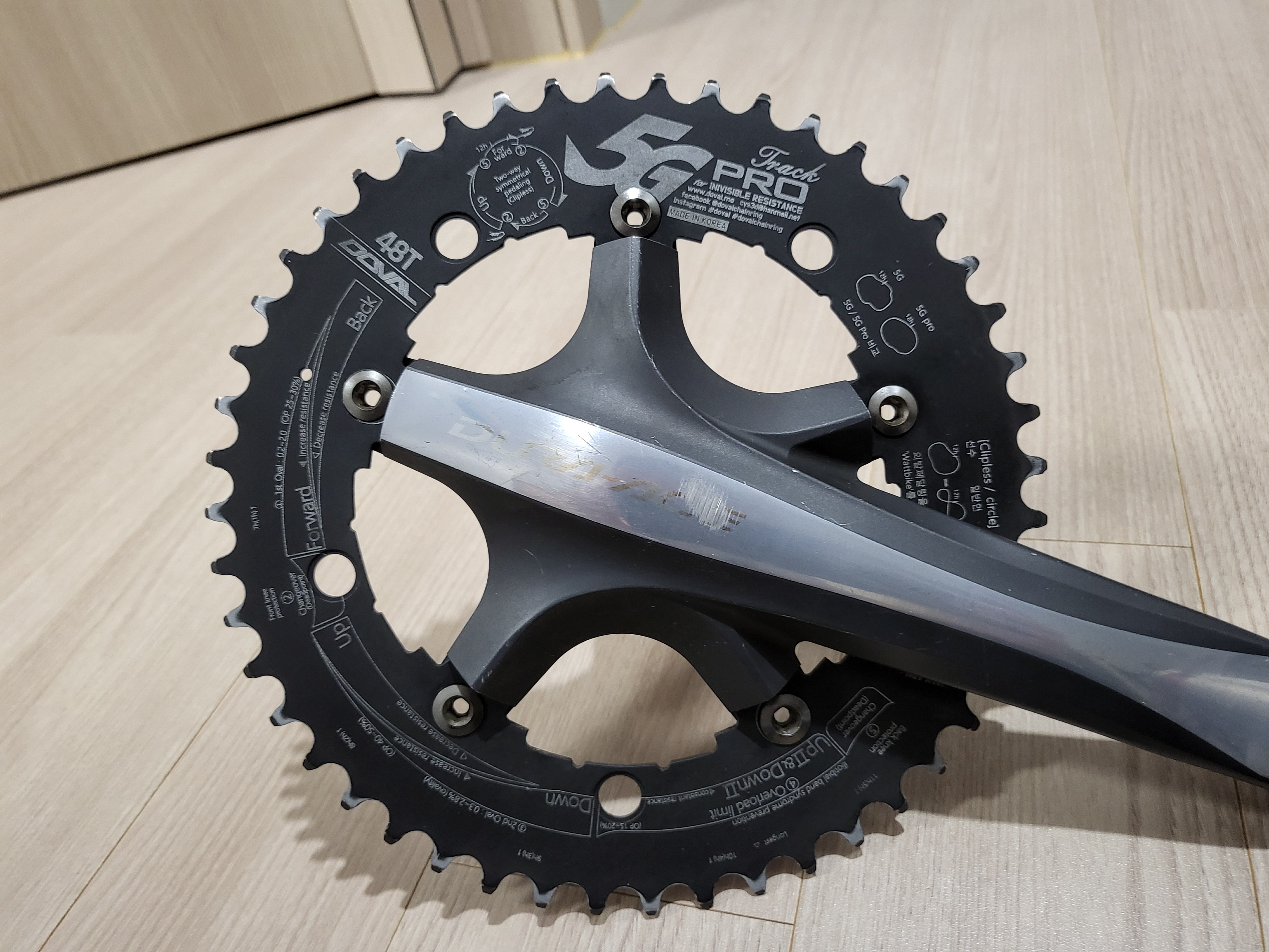 복단화를 위해 기존의 라이드디스크에서 사용하던 고싸머 크랭크셋, 앞변속기를 에퀴녹스로 이전설치했고, 8단 체인을 10단체인으로, 체인 텐셔너를 따로 보관해두었던 105(5700) 10단 뒷변속기로 교체하였다. 싱글체인으로 사용하던 듀라에이스(7900) 크랭크는 다시 라이드디스크에 설치하기 위해 탈거해 둔다.