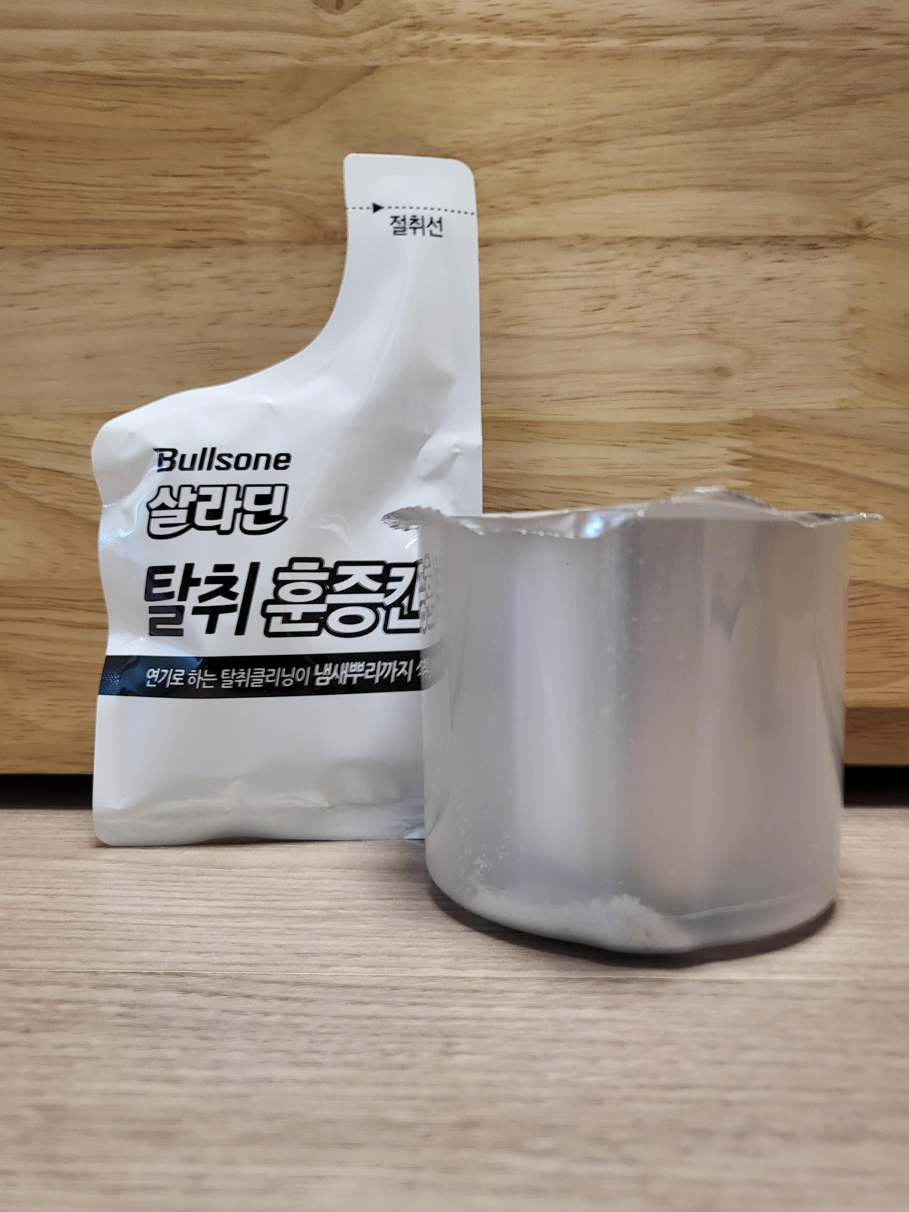 며칠 전 부터 공조기를 가동하면 에어컨을 끈 직후의 냄새와는 다른, 먼지냄새(?) 비슷한 퀴퀴한 냄새가 난다. 이베이포레이터(에바) 크리닝 대신 훈증캔을 구매하여 탈취작업을 진행해 보았다. 제품 포장 안에는 훈증캔과 물이 들어있는 파우치가 동봉되어 있다.