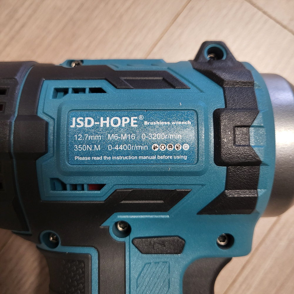 본체 라벨에는 0-3200 rpm, 0-4400 rpm으로 기재되어 있으며 이는 단수별 RPM 인 듯 하다. 토크치는 350 N·m로만 기재되어 있어 단수별 조임토크나 풀림토크를 구분할 수 없으며, 분당 타격수 또한 확인할 수 없었다. 매뉴얼에도 일반적인 사용법과 주의사항이 기재되어 있을 뿐, 제품별 제원치가 표시되어 있지 않다. 이런 내용은 유튜브를 통해 주워들은 용어들 일 뿐 필자는 임팩트 드라이버나 렌치를 사용해 본적이 없어 전문적인 리뷰는 불가능하다... ㅎㅎ