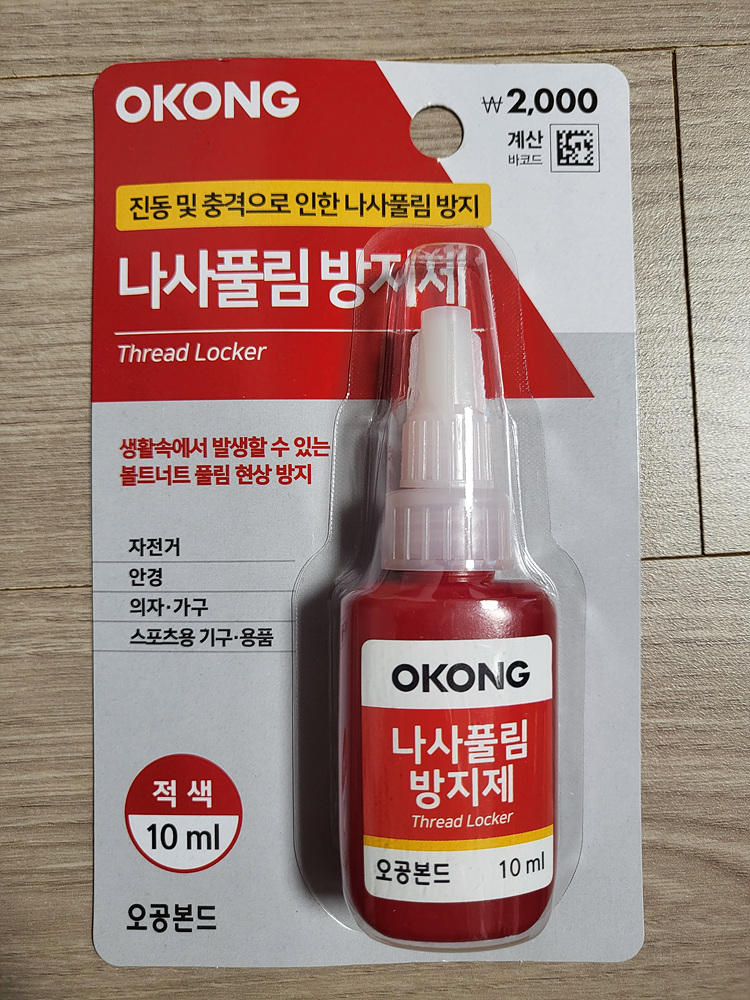 나사 고정제라하면 보통 록타이트를 떠올리지만, 저렴한 대안으로 오공사의 나사품림 방지제도 고려해 볼 수 있다. 보통 이런 종류의 제품은 록타이트를 기준으로 떠올리게 되어 빨간색인 경우 영구고정용으로 인식되지만, 이 기준이 오공사의 나사풀림 방지제에도 동일하게 적용되는 것은 아니다.