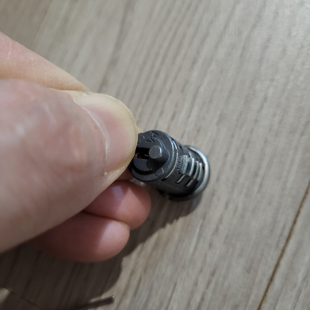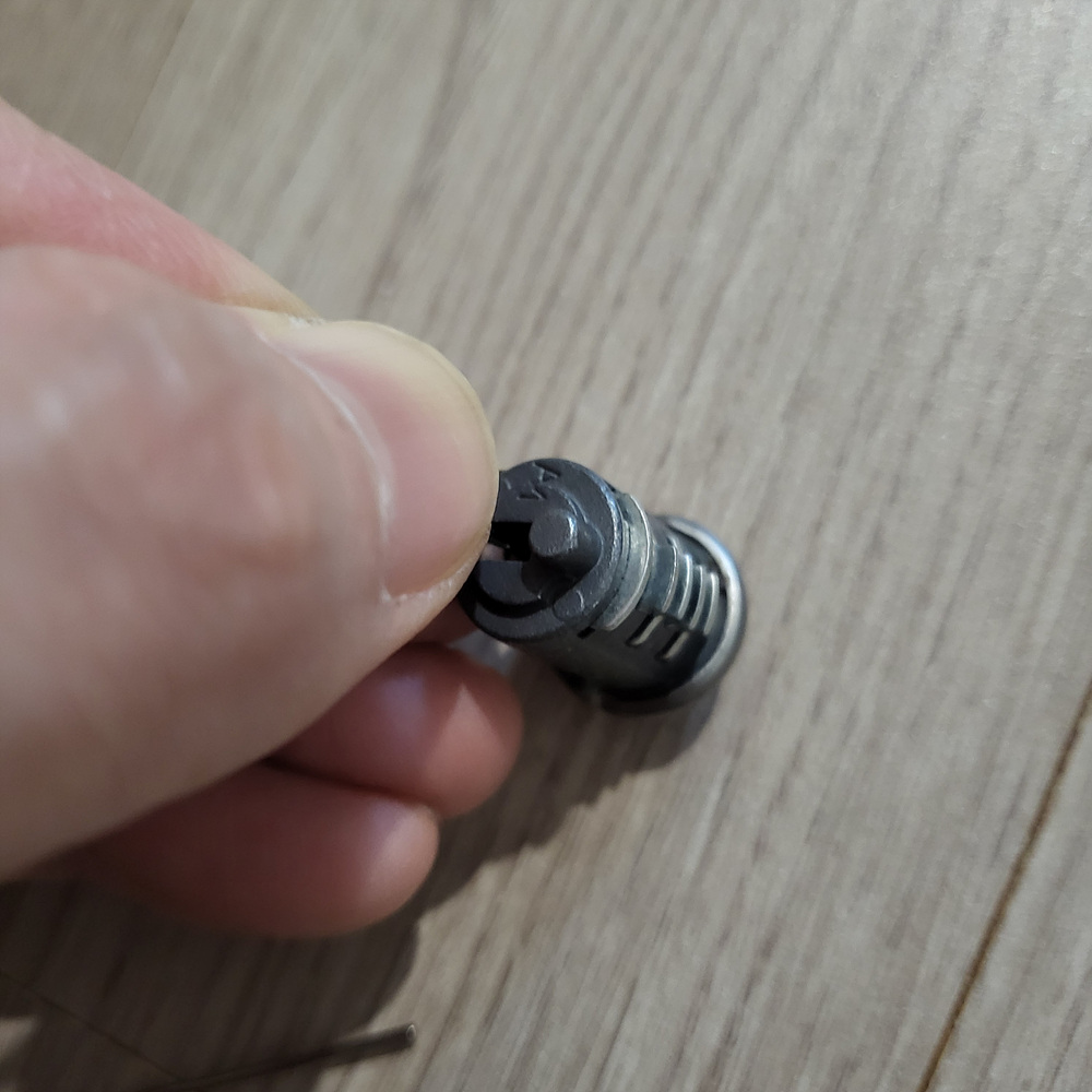 락 코어는 아래와 같이 실린더에 장착된다. 코어의 가장 안쪽 부분이 실린더 고정용 돌기이다. 이해를 돕기 위해 반대편(코어의 내측)으로 돌기를 안쪽으로 넣어주면 코어를 뺄 수 있는 상태가 된다.