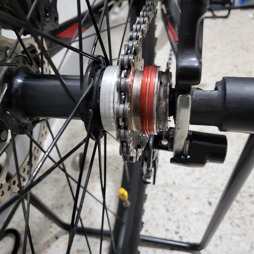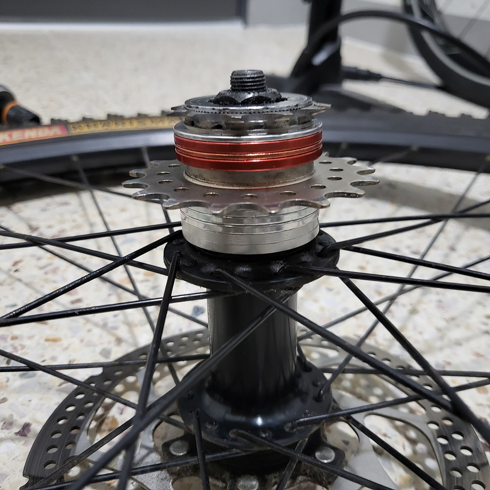 트렉 에퀴녹스에서 싱글용으로 사용하다 탈거하여 보관하던 싱글 변환 키트(싱글 코그 와 스페이서)를 MTB 휠셋에 설치한다. 싱글 코그는 17T이다.