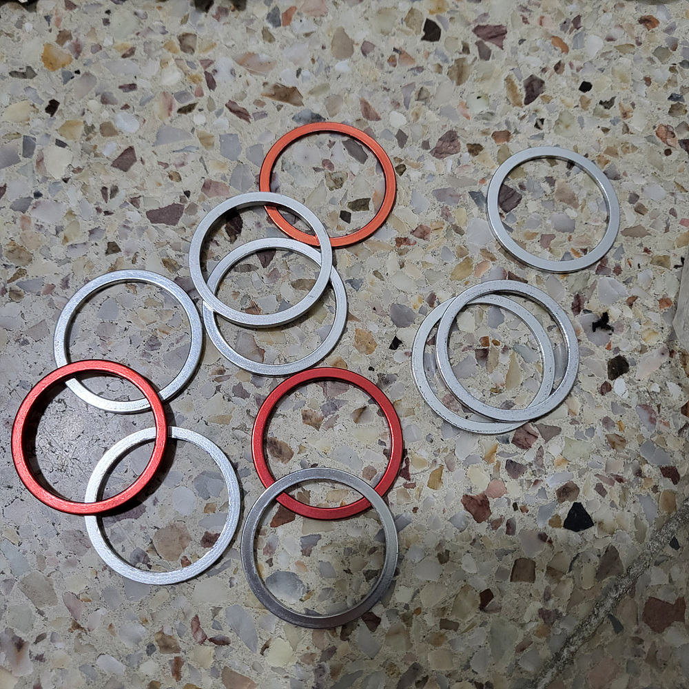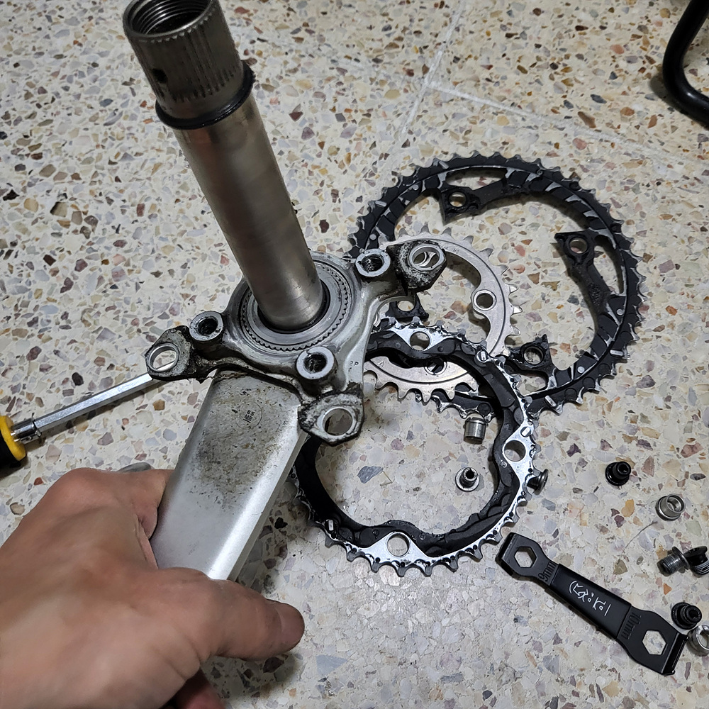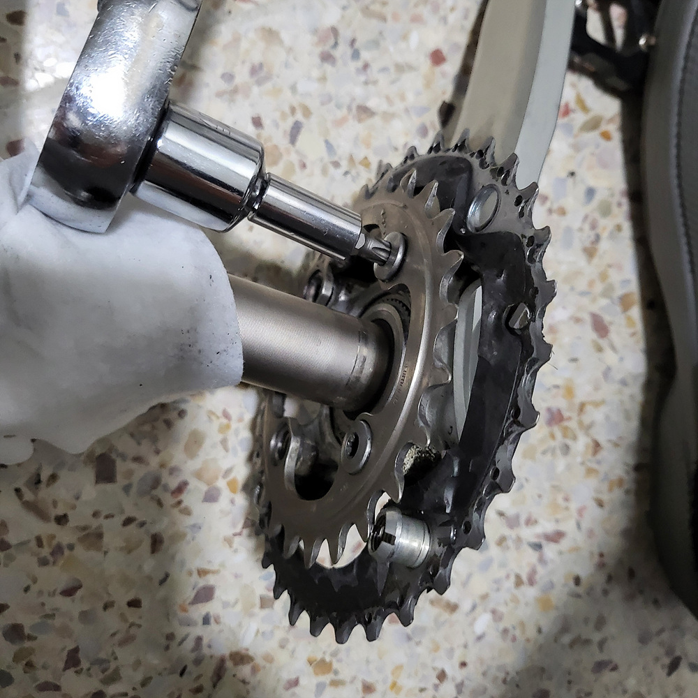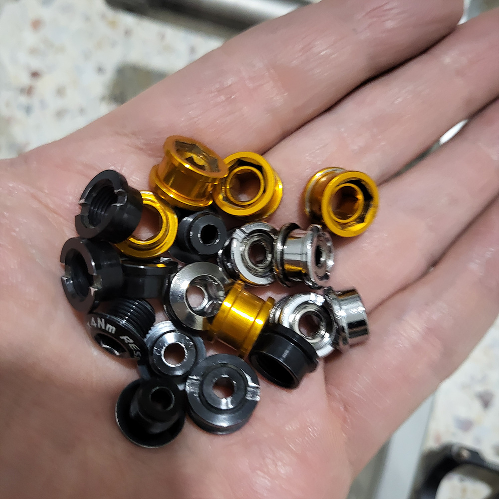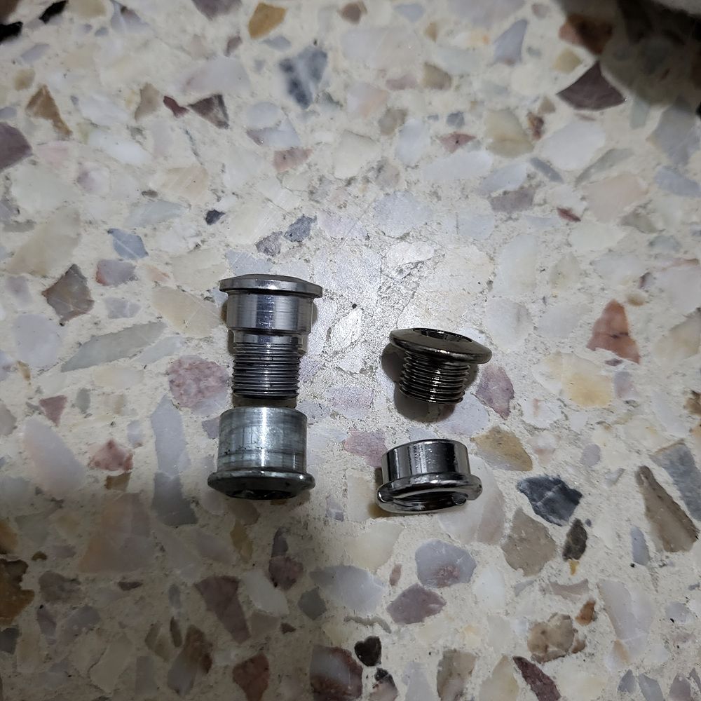 싱글 체인링이기 때문에 체인링 볼트도 짧은 것을 사용해야 한다. 가운데 사진에서 왼쪽이 더블체인링용, 오른쪽이 싱글체인링용 볼트이다. 알루미늄은 배제하고 스틸 볼트를 사용했다.