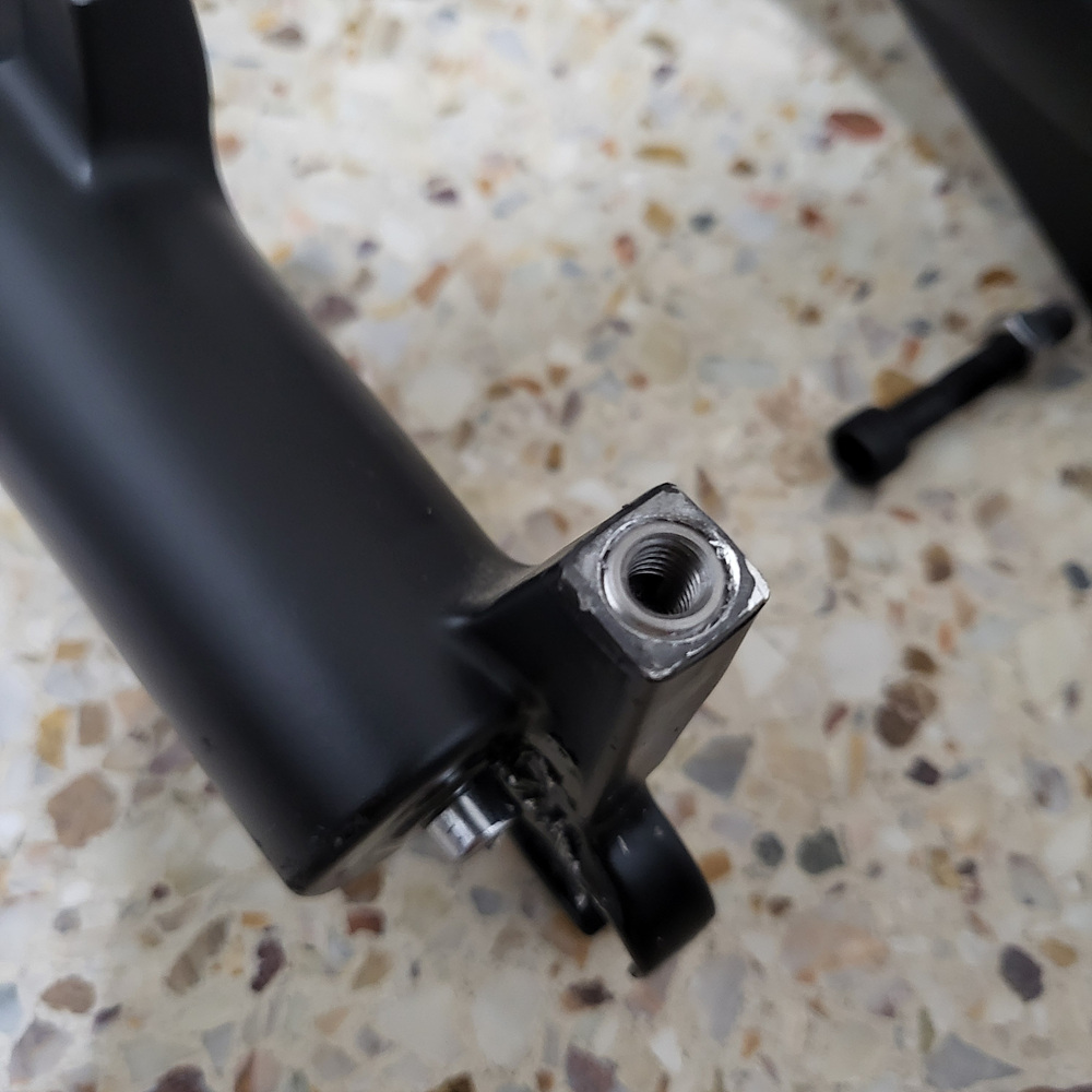 서스펜션 포크 디스크 브레이크 캘리퍼 마운트의 손상된 나사산을 복원하기 위해 적절한 헬리코일 작업과 록타이트까지 바르고 꼬박 24시간 후에 볼트를 체결하는데, 팅팅 거리면서 스프링이