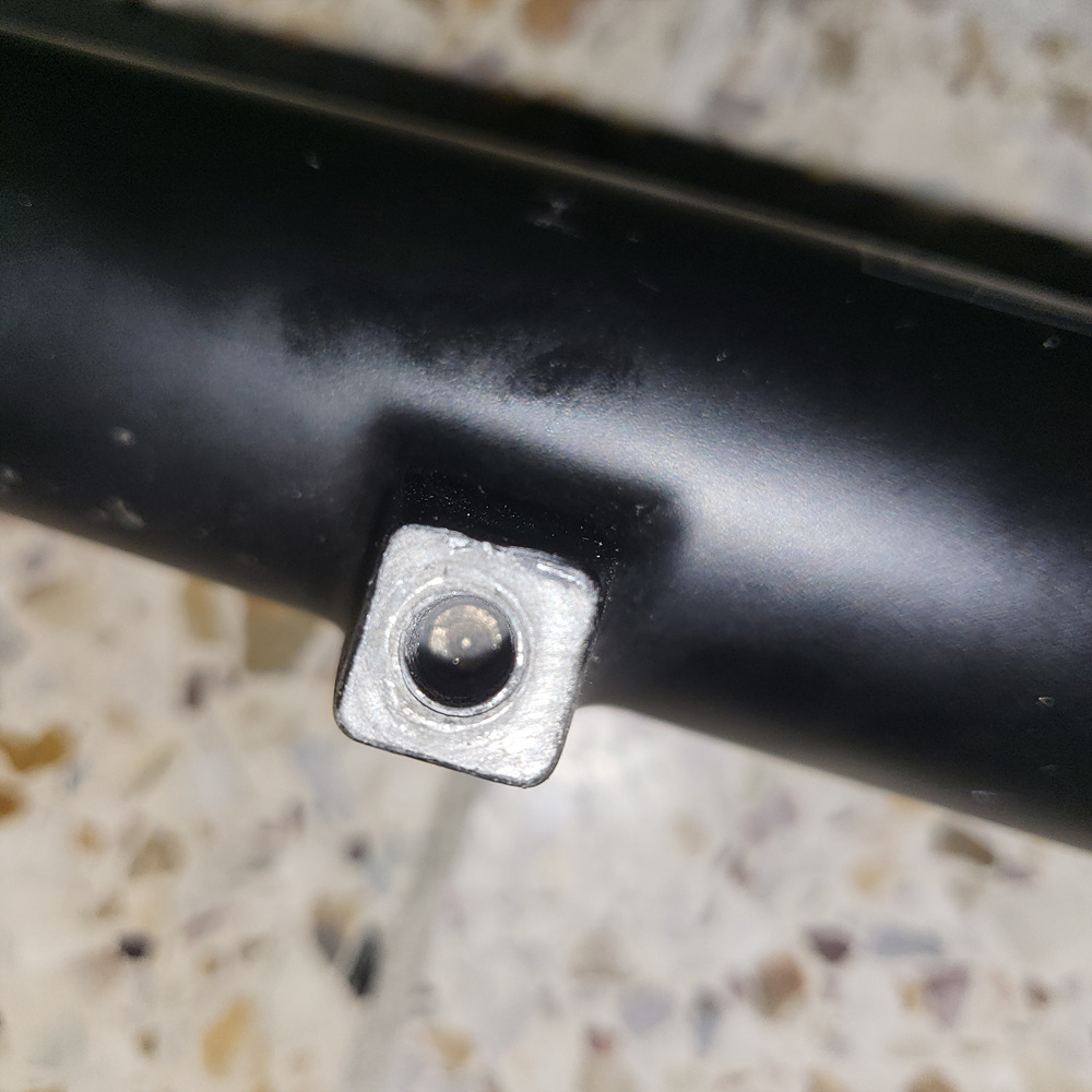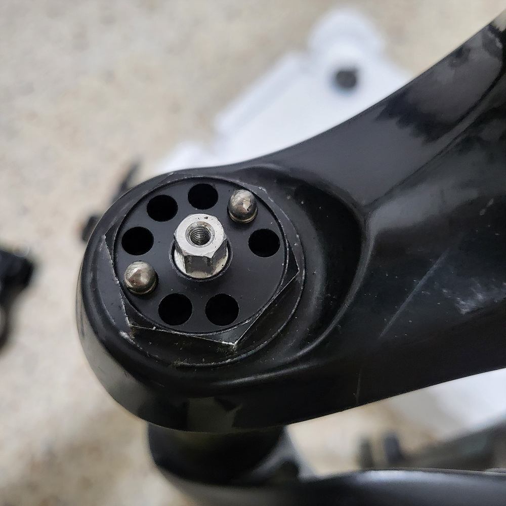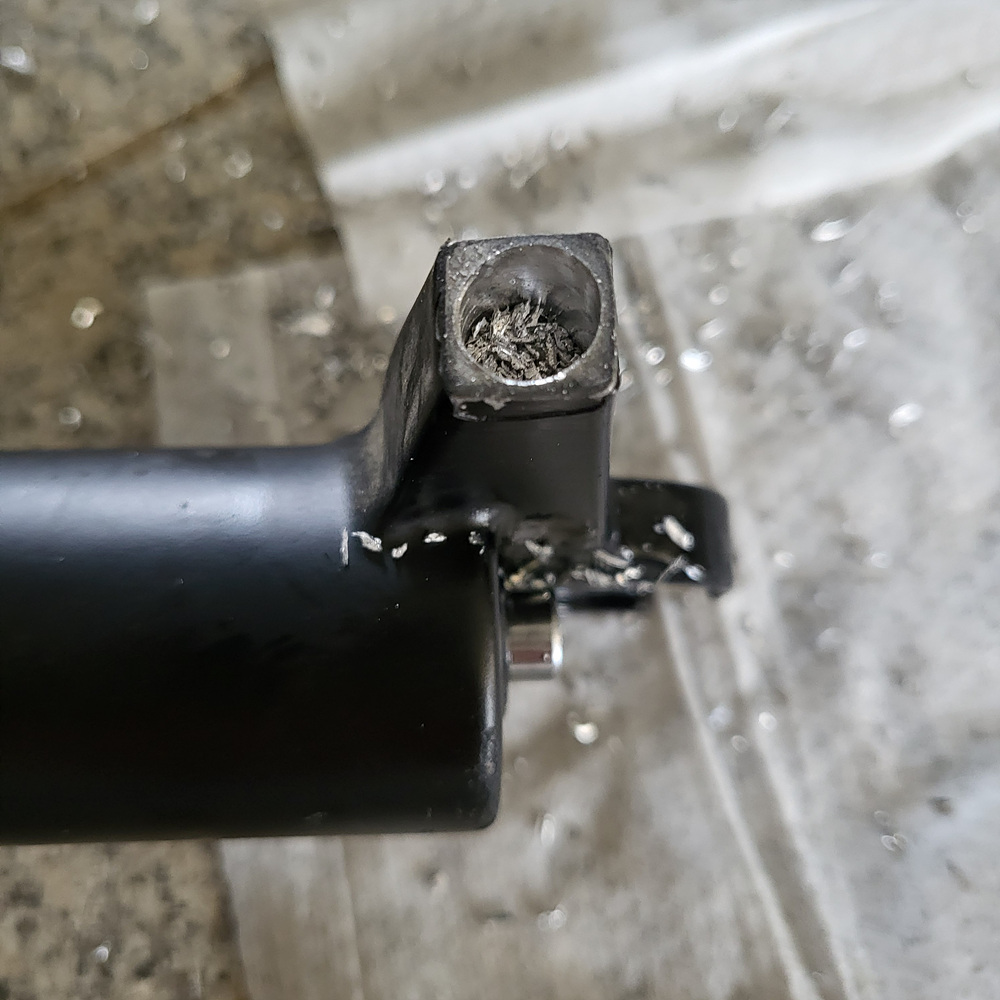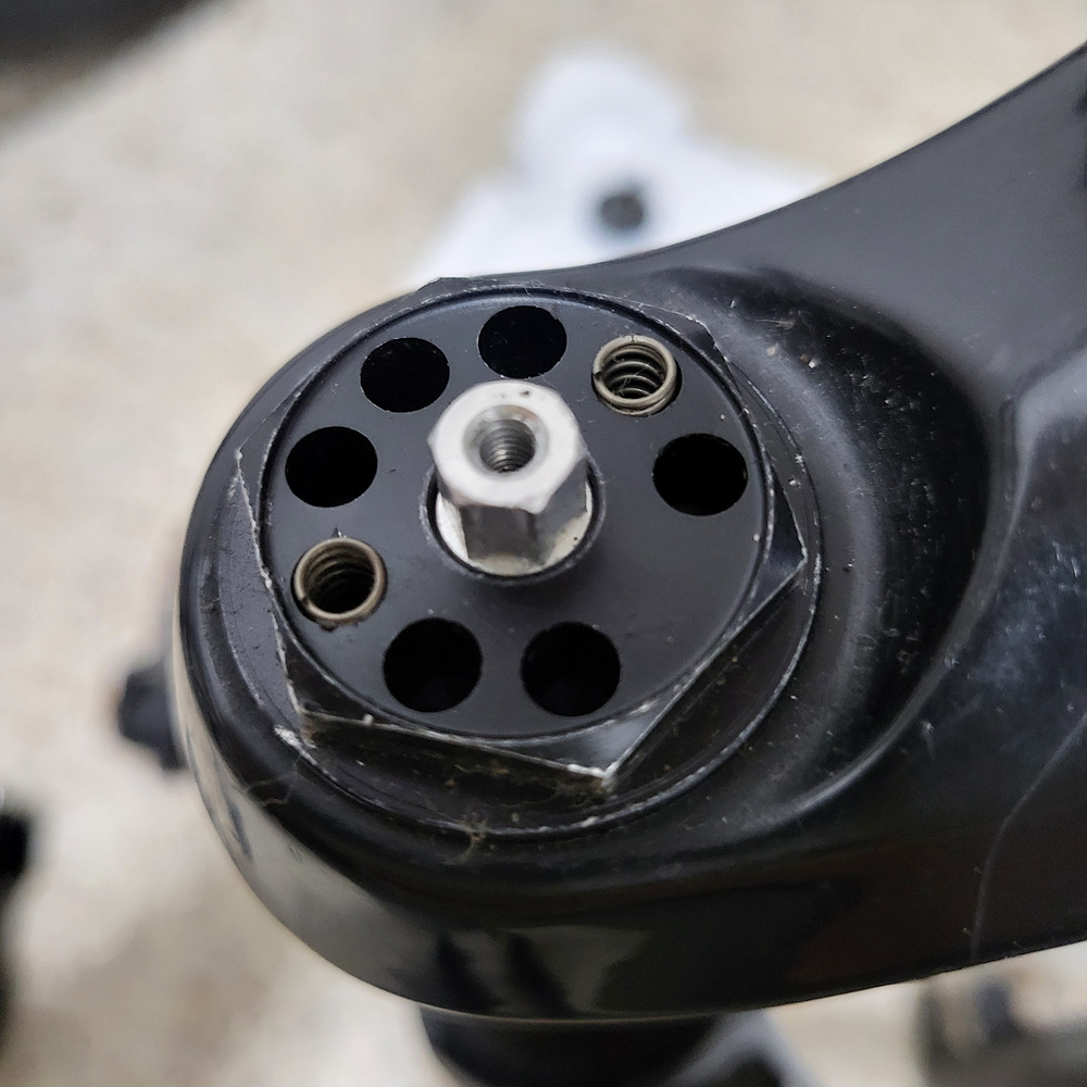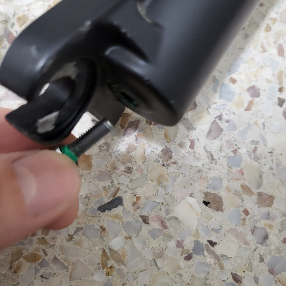 브레이크를 완전히 설치하기 전에 마운트 상태를 확인해본다. 이 작업 하기 훨씬 전에 이미 스레드가 상당부분 손상되었다.