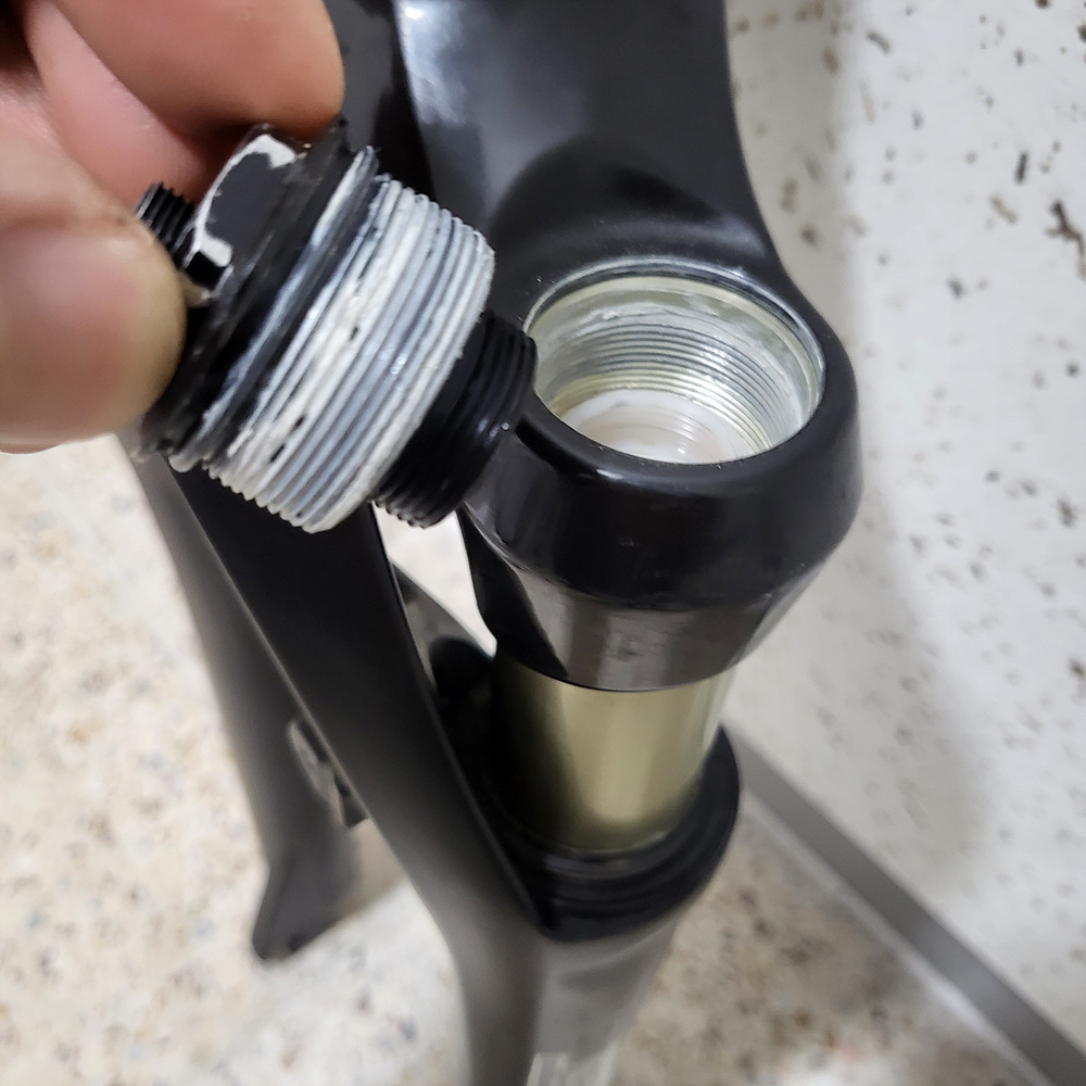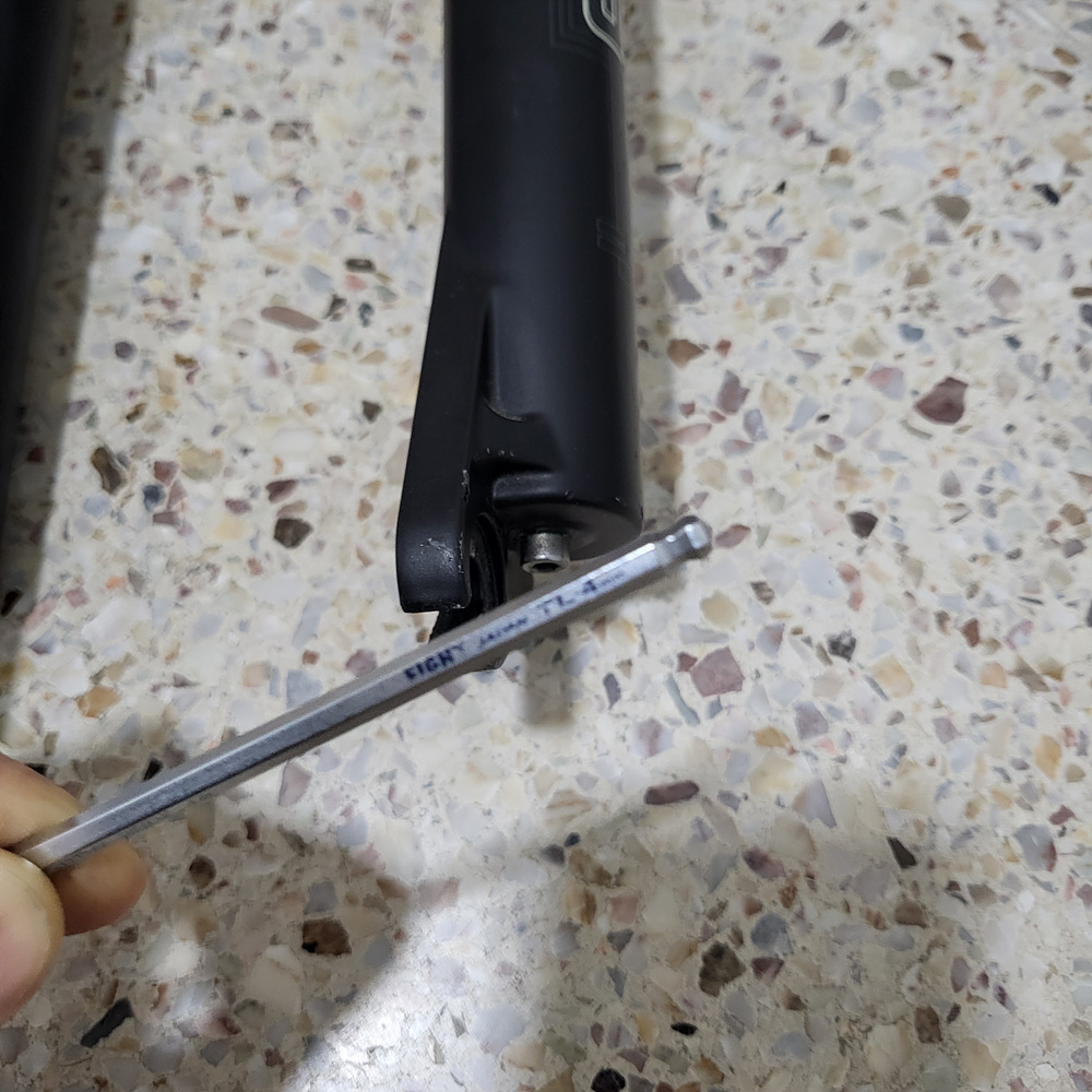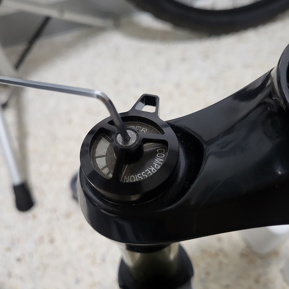 컴프레션을 담당하는 OCR 노브를 완전히 풀린 상태로 돌려둔 다음 육각렌치를 사용하여 노브를 분리한다. 락아웃 어셈블리를 제거하고 기존의 오일을 쏟아낸 다음 하단의 리바운드 어셈블리를 펌핑하여 잔유를 제거한다.