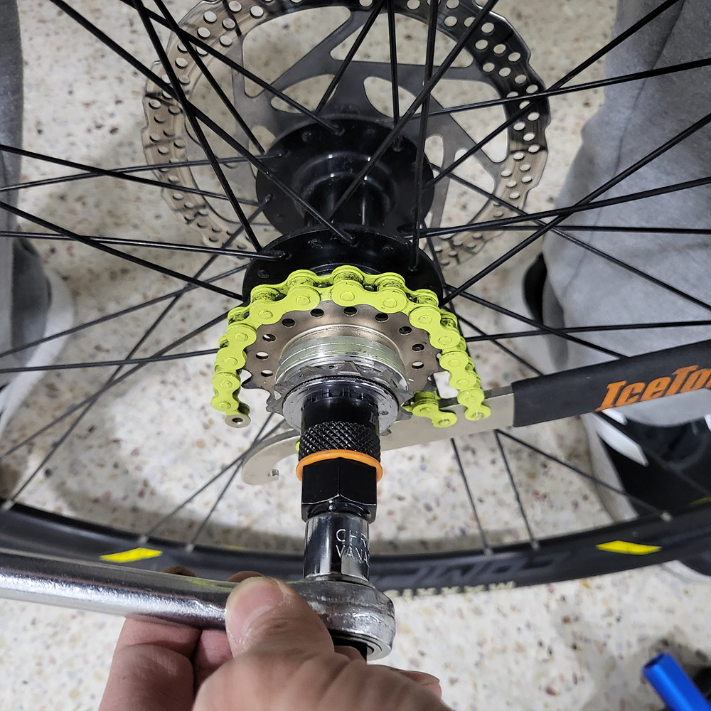 설치했던 싱글기어용 컴포넌트 중 8단체인과 텐셔너를 먼저 탈거한다.