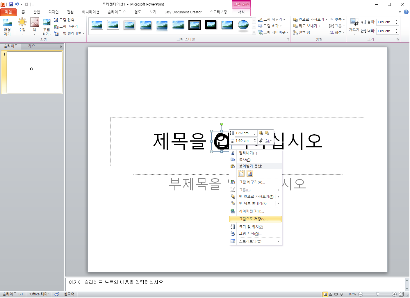 2) PowerPoint 를 실행시킨 후 이미지를 삽입한다.